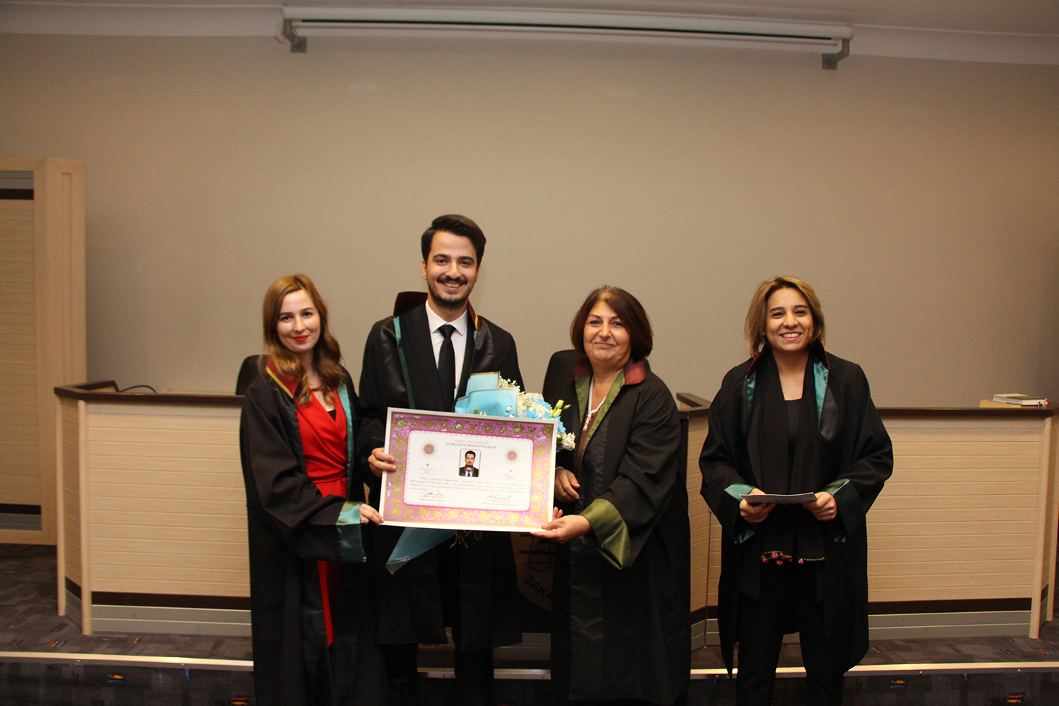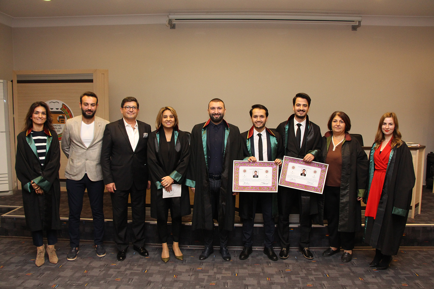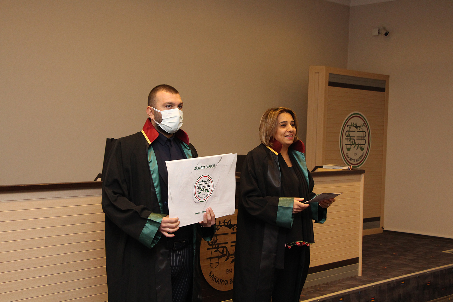 Staj dönemini başarıyla tamamlayan stajyer avukatlar Oğuz Hadi Atik ve Samet Kaya, meslek yeminlerini edip cübbelerini giyerek ruhsatnamelerini aldılar.