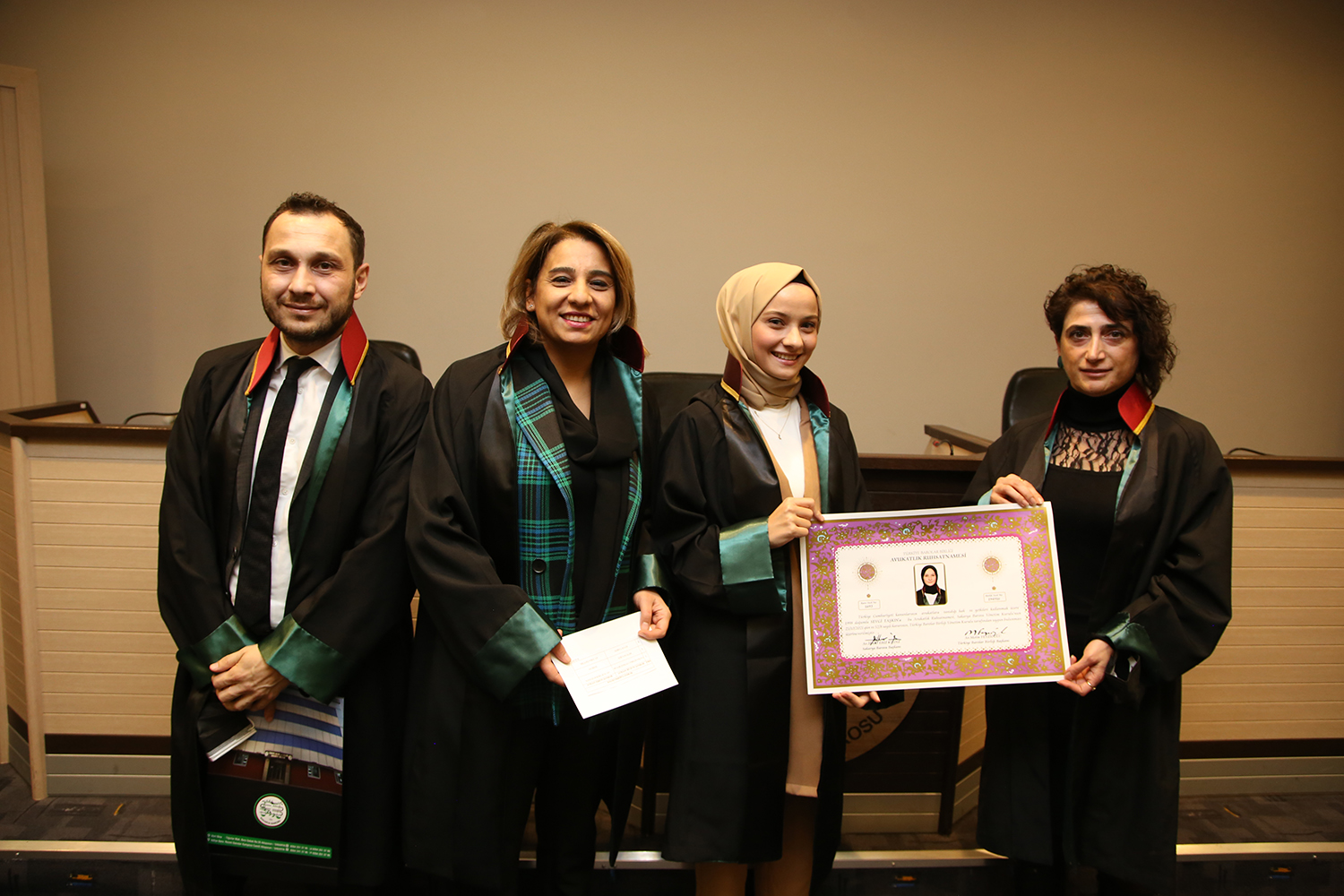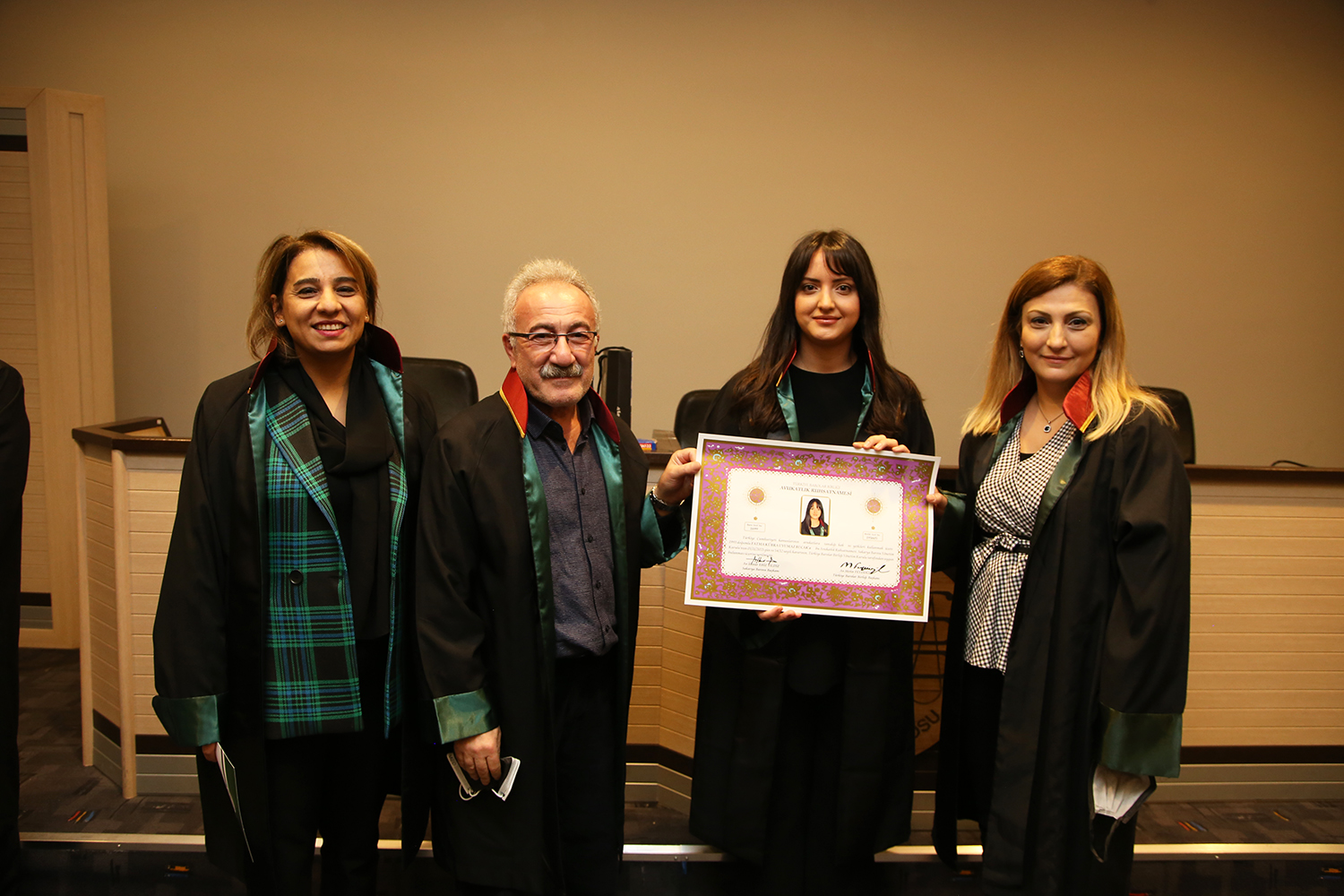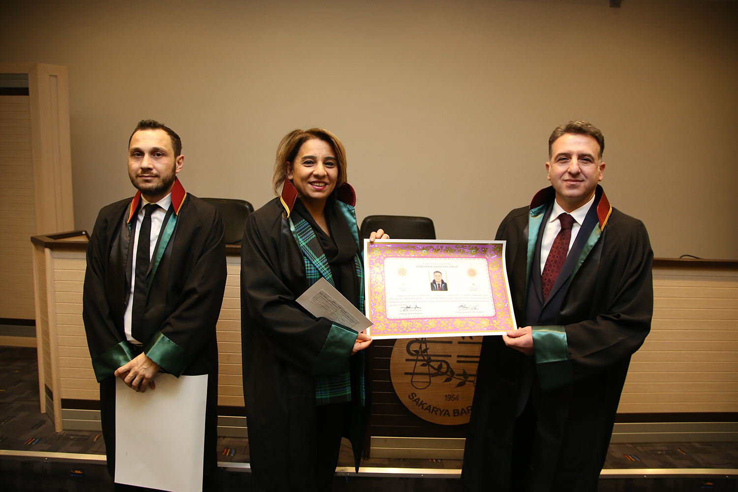 Staj dönemini başarıyla tamamlayan stajyer avukatlar Fatma Kübra Uyumaz Bucak, Mustafa Şen ve Sevgi Taşkın, meslek yeminlerini edip cübbelerini giyerek ruhsatnamelerini aldılar.