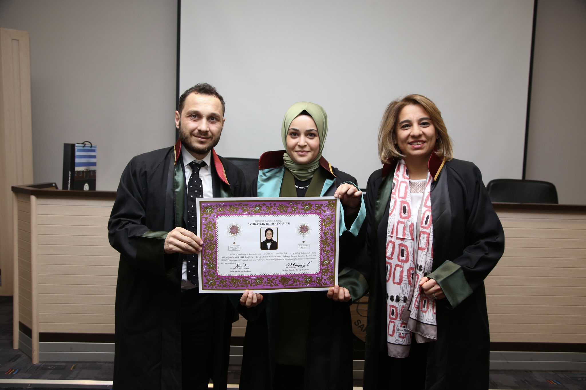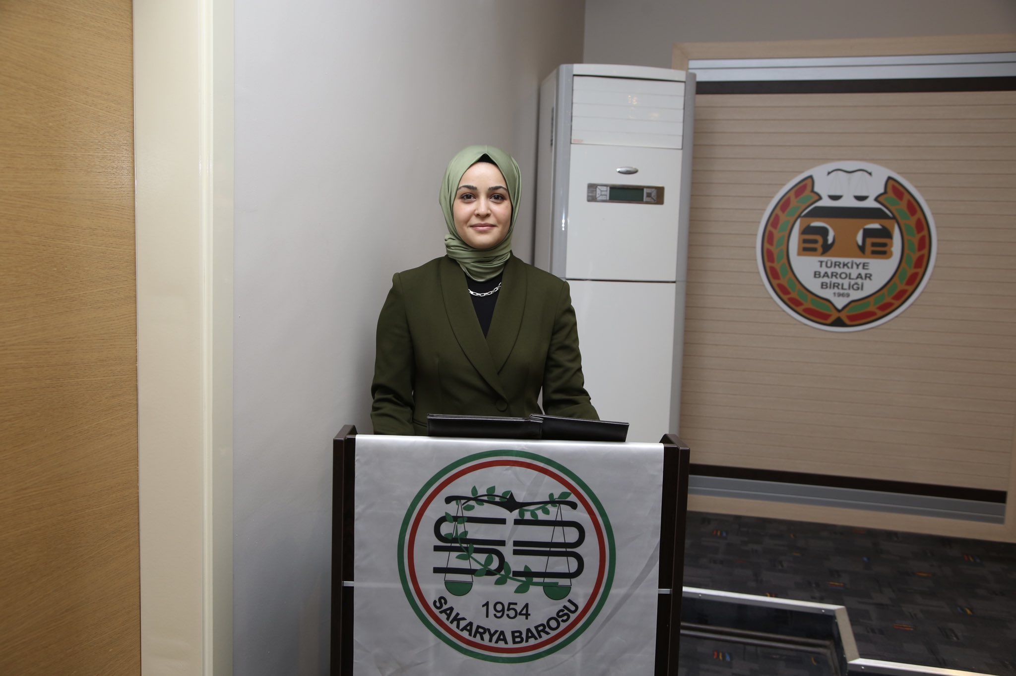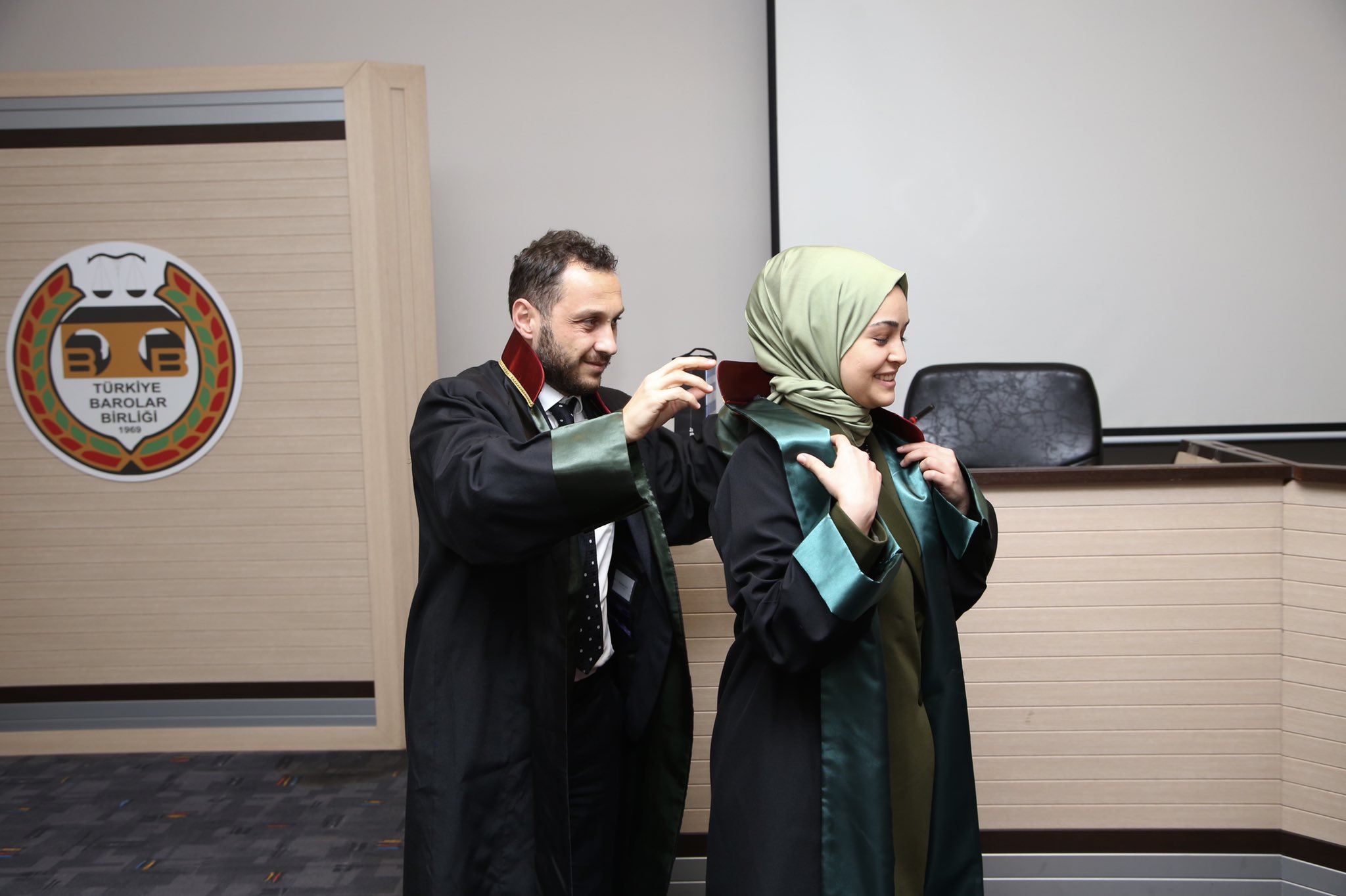 Staj dönemini başarıyla tamamlayan stajyer avukat Nurşah Taşın, meslek yeminini edip cübbesini giyerek ruhsatnamesini aldı.