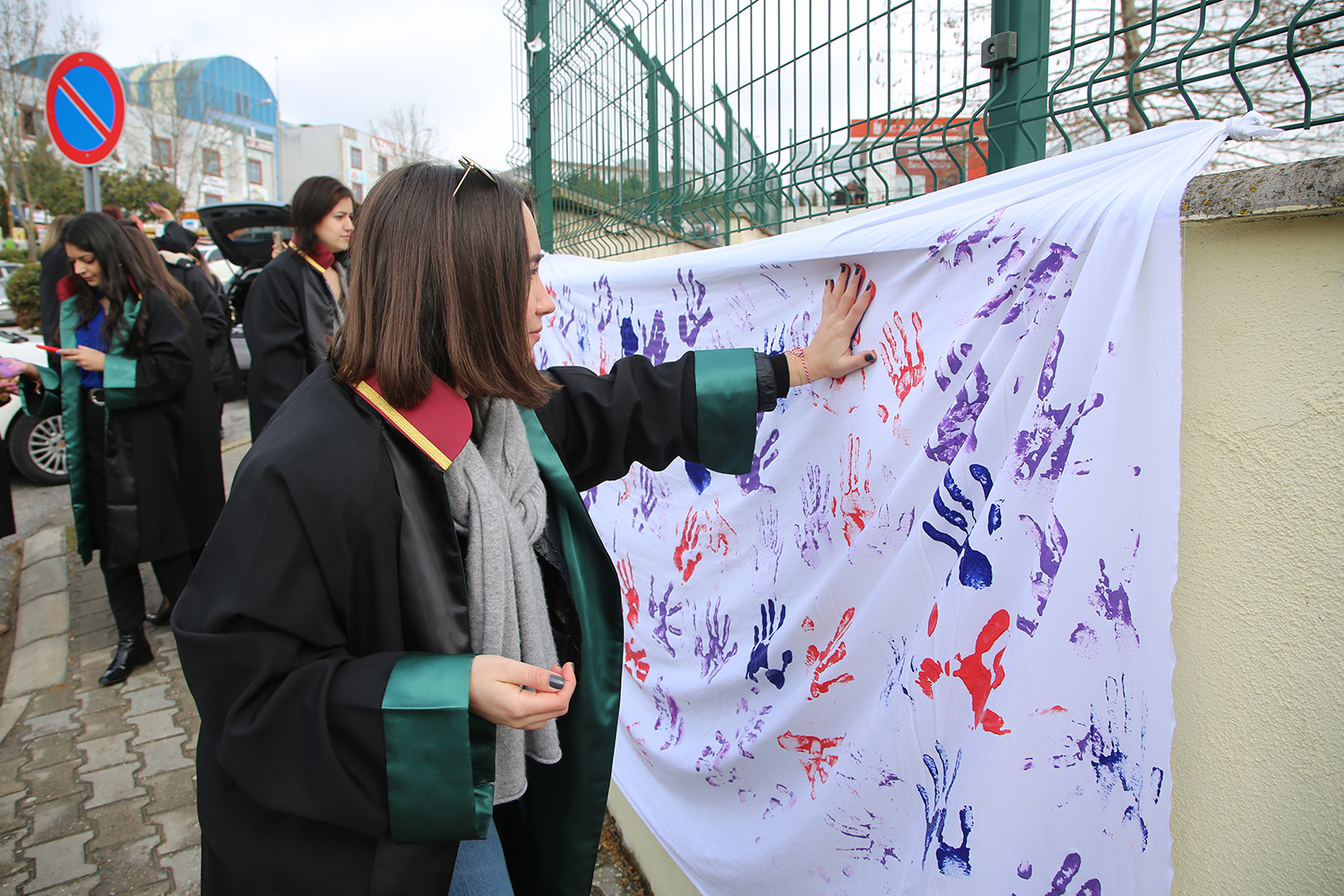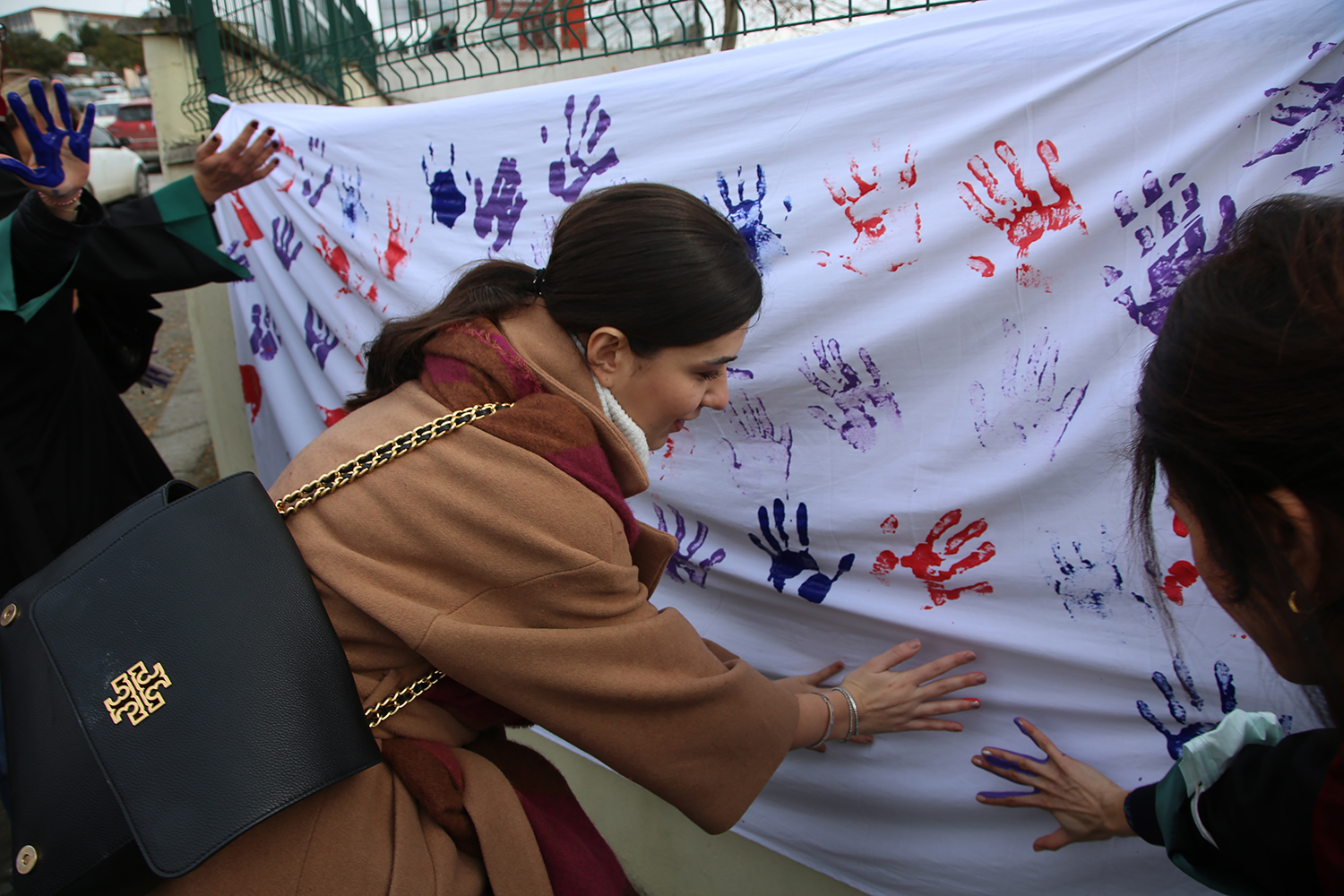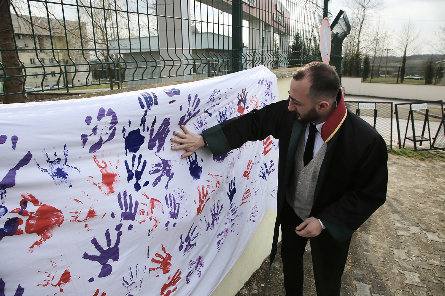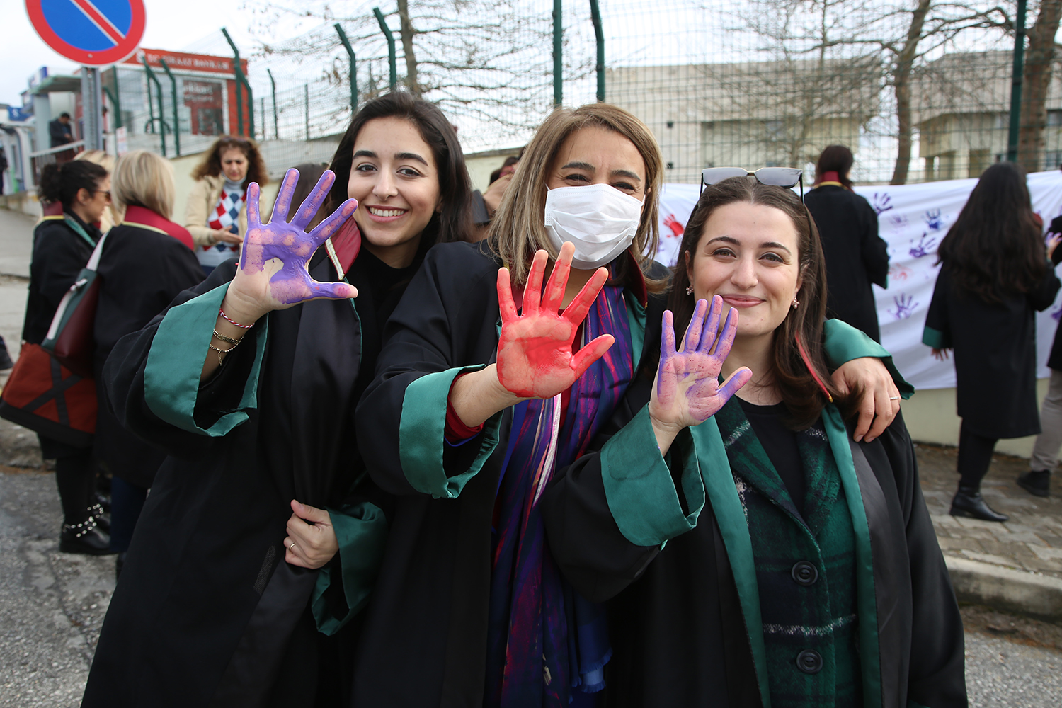 Sakarya Barosu Kadın Hakları Merkezi, 8 Mart Dünya Kadın Hakları Günü nedeniyle Sakarya Adliyesi önünde basın açıklaması yaptı ve ardından her bir emekçi kadının yanında olduğunu göstermek için ‘el izi’ bırakma etkinliği düzenledi.
