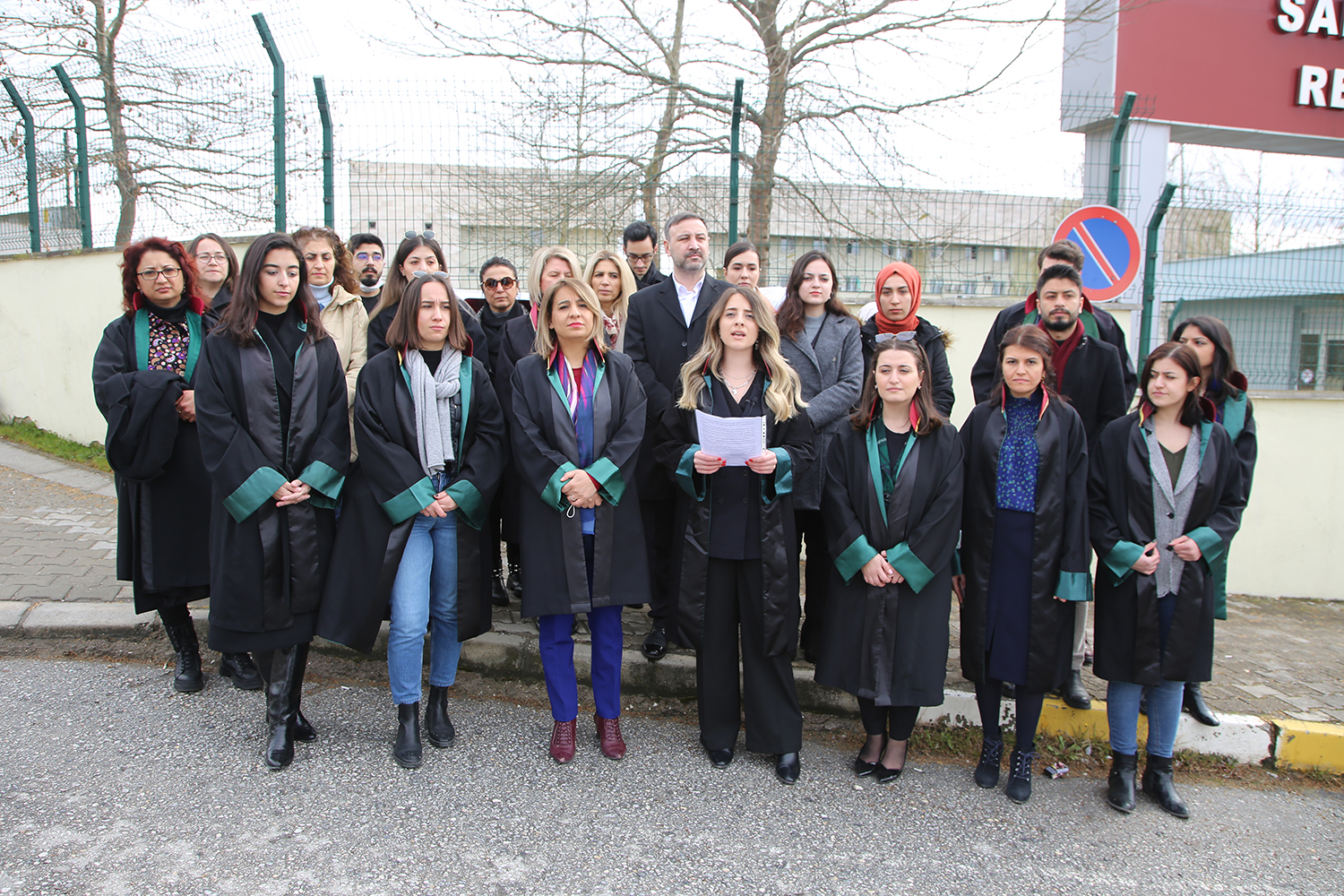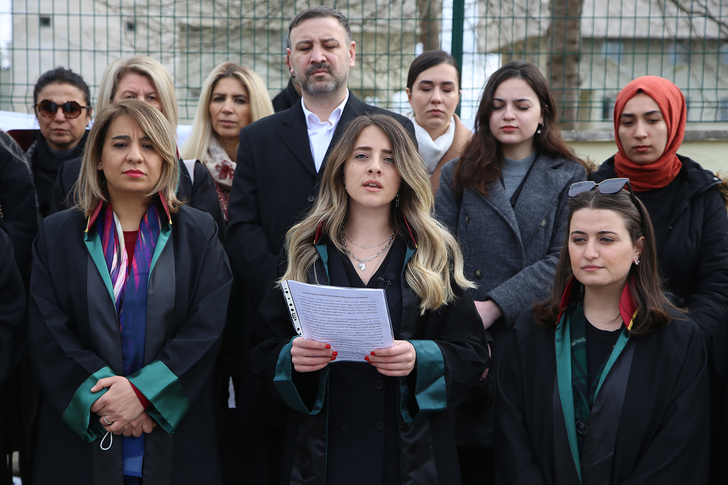 Kadın Hakları Merkezi Üyesi Av. Birke Varol tarafından yapılan basın açıklamasında; Baro Başkanı Av. İlknur Ebiz Yıldız, Baro Genel Sekreteri Av. Akın Çağlar Göktürk, Merkez Başkanı Av. Özlem Zengin ve çok sayıda avukat ile stajyer avukat yer aldı.