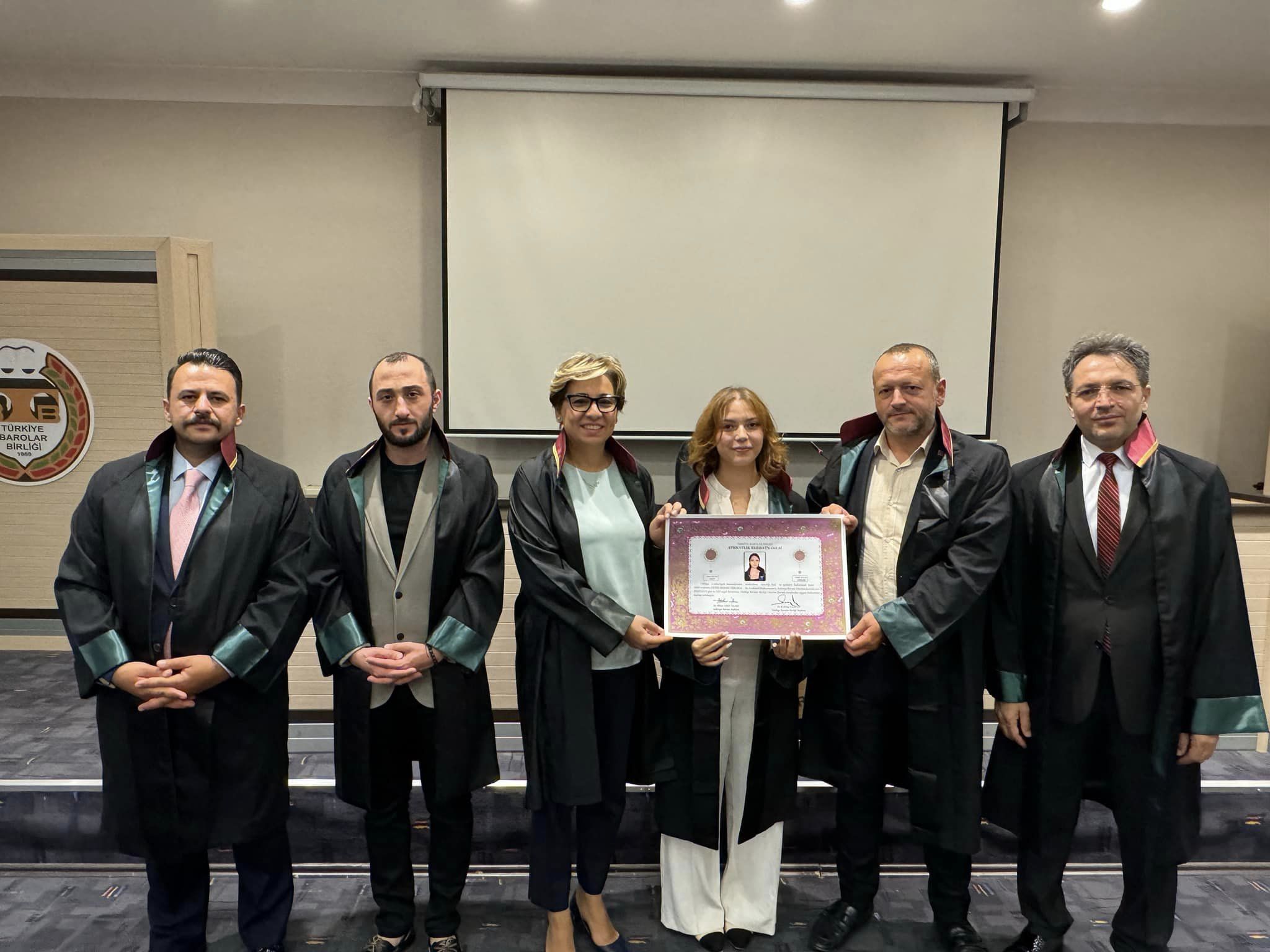 Staj dönemini başarıyla tamamlayan Deniz İremsu Özkan, meslek yeminini edip cübbesini giyerek ruhsatnamesini aldı.