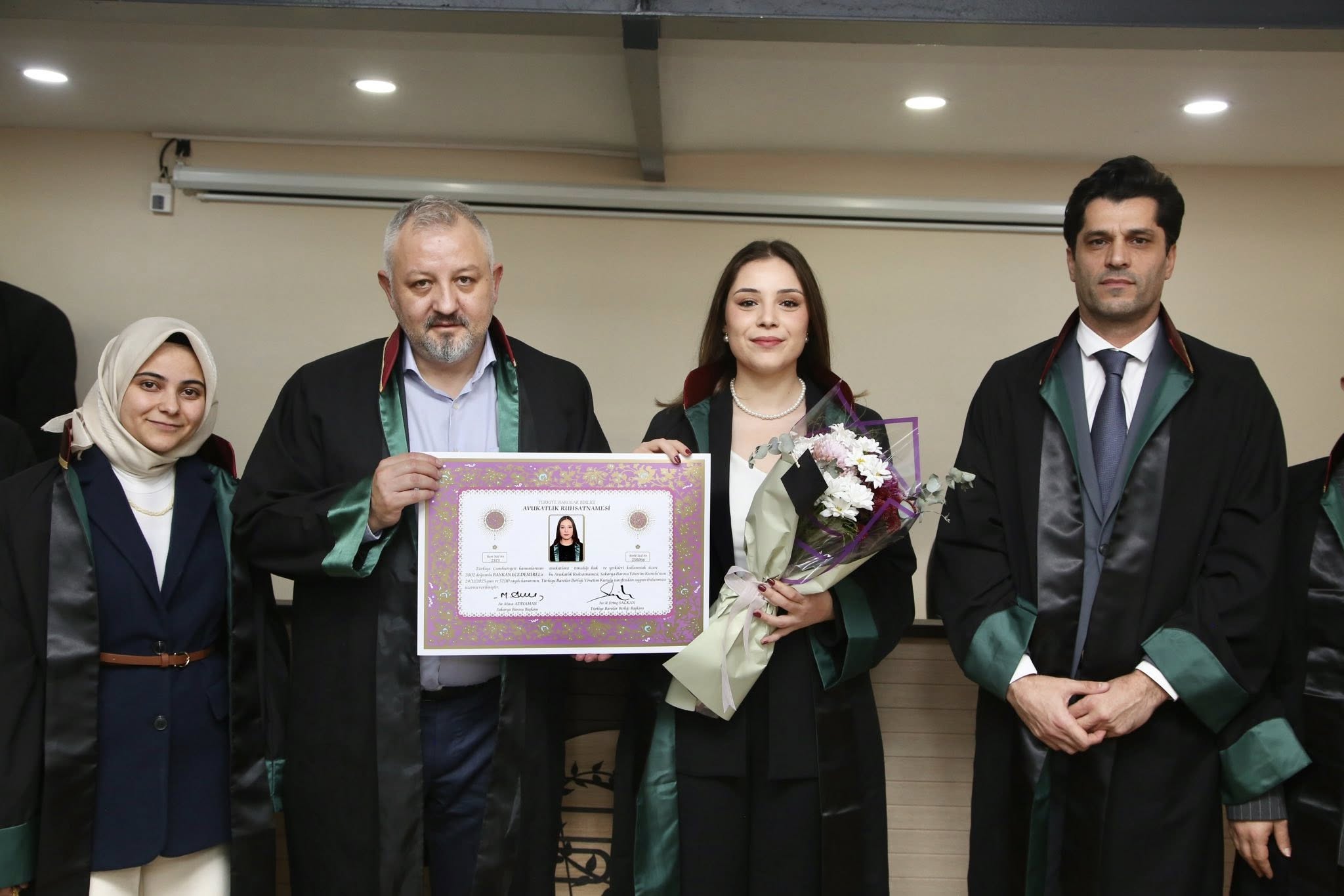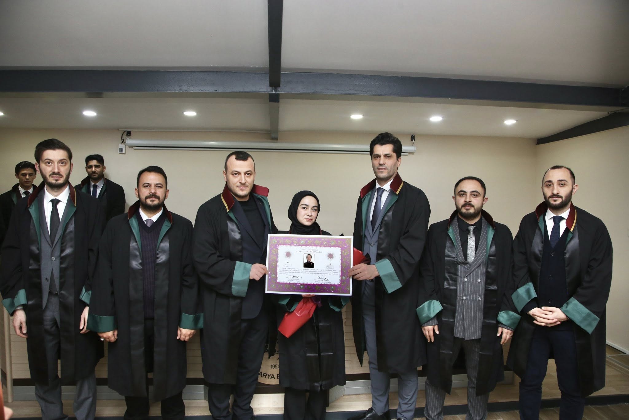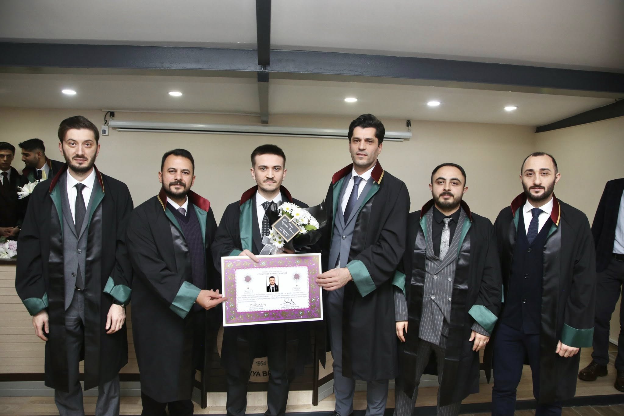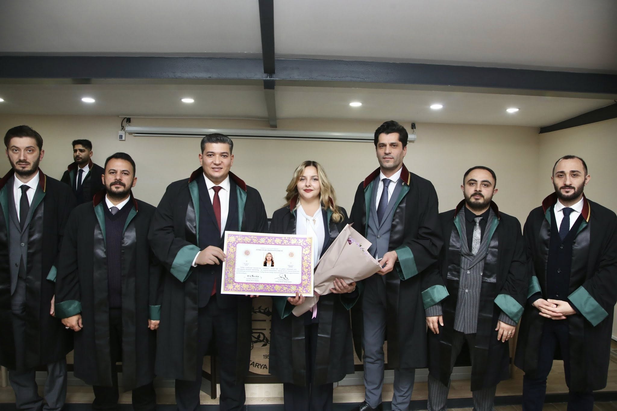 Staj dönemini başarıyla tamamlayan Berke Akbaş, Sedat Öztürk, Ahmed Zahid Akyüz, Baykan Ece Demirel, Tuba Baş, Sueda Erduman, Selinay Sevindi ve Muhammed Emin Tabak, avukatlık meslek yeminlerini edip cübbelerini giyerek ruhsatnamelerini aldılar.