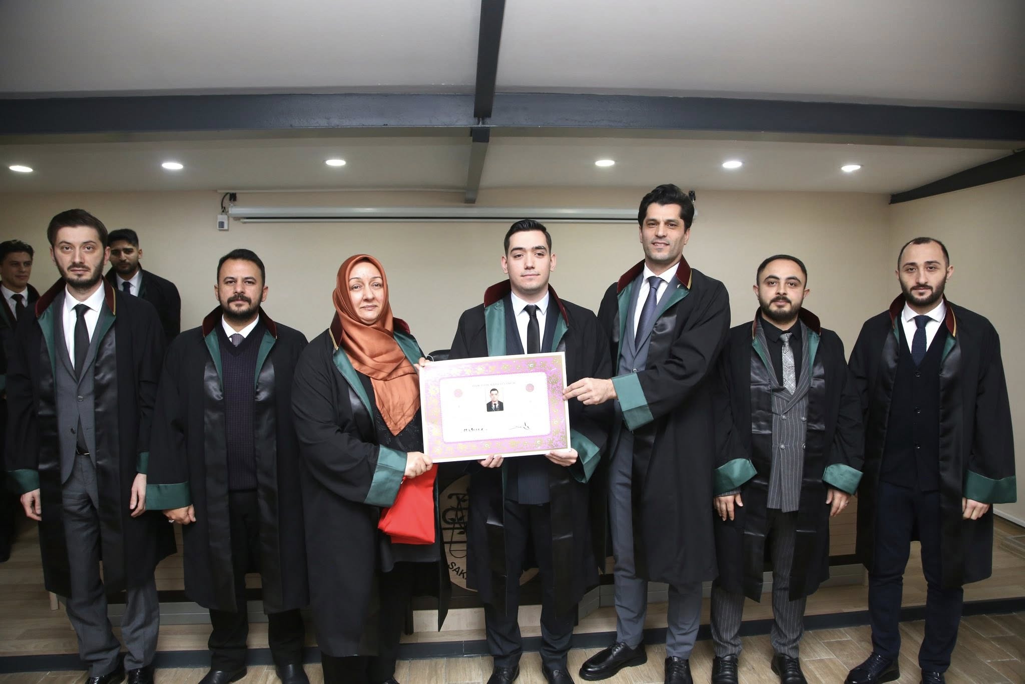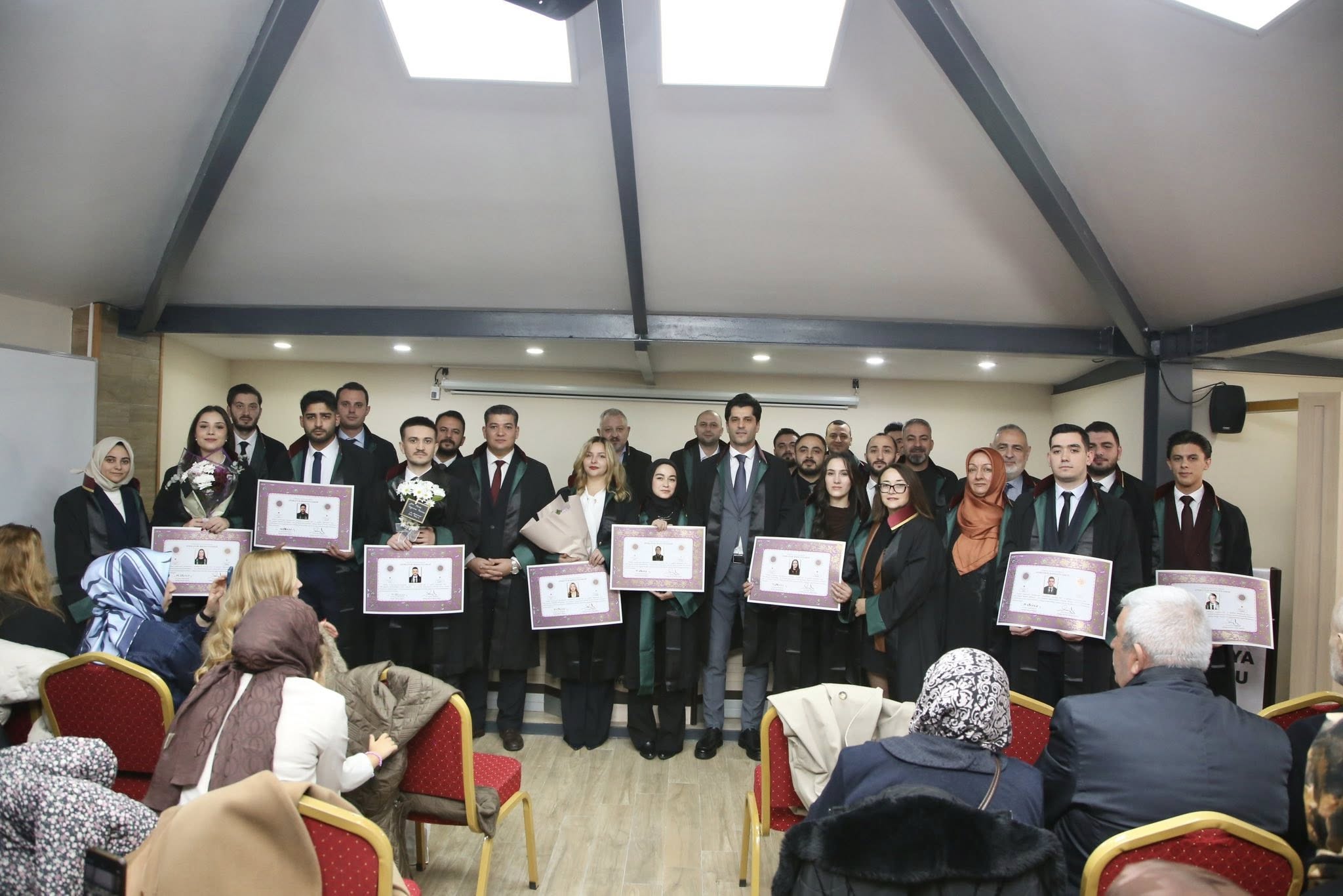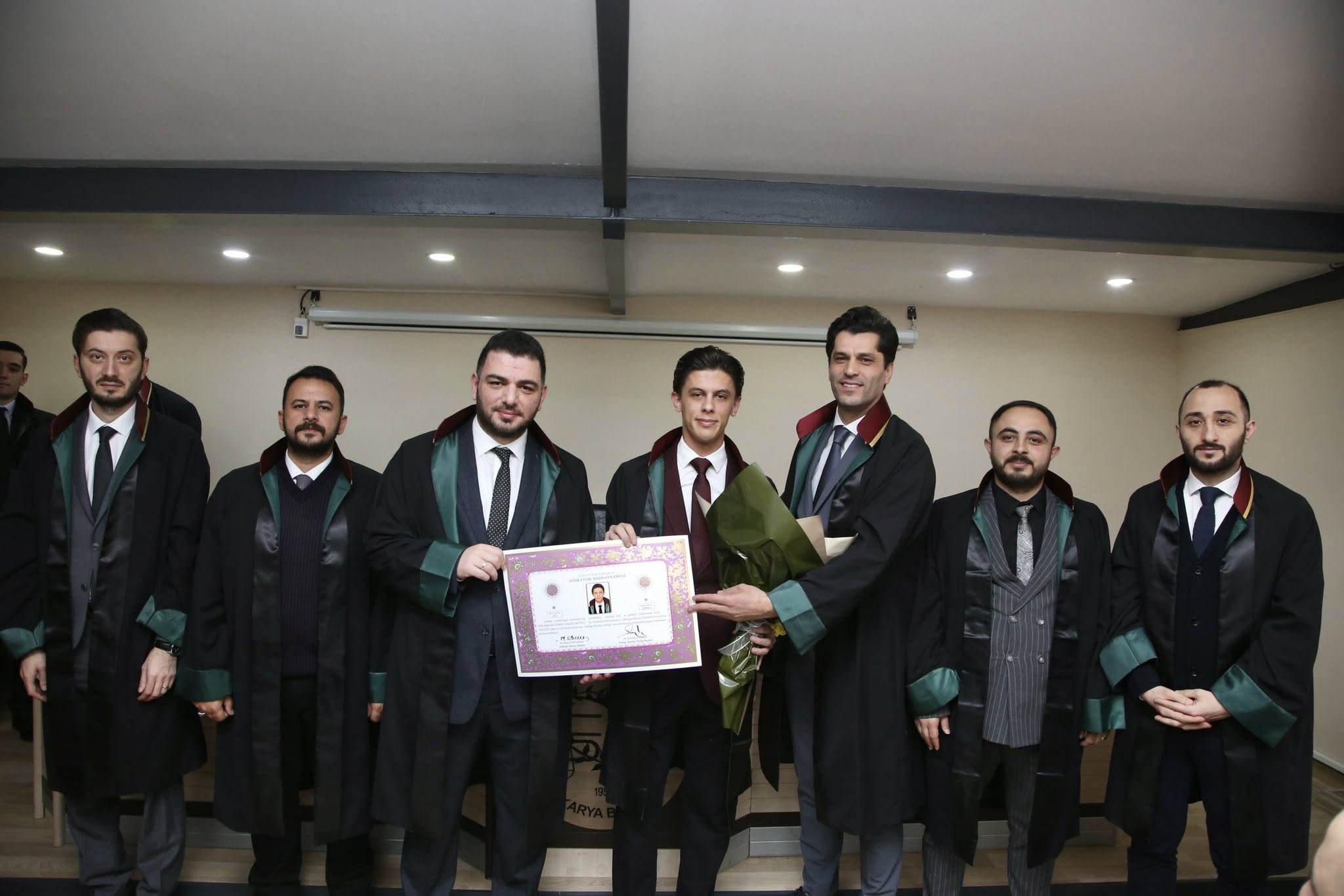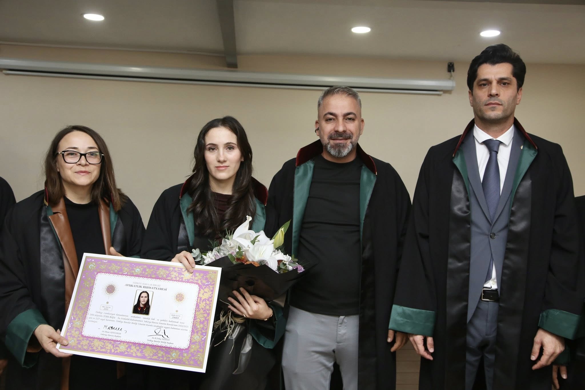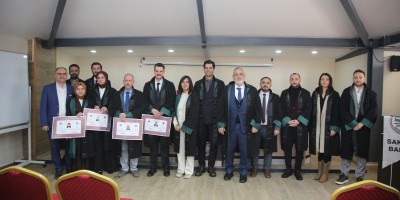 Staj dönemini başarıyla tamamlayan Berke Akbaş, Sedat Öztürk, Ahmed Zahid Akyüz, Baykan Ece Demirel, Tuba Baş, Sueda Erduman, Selinay Sevindi ve Muhammed Emin Tabak, avukatlık meslek yeminlerini edip cübbelerini giyerek ruhsatnamelerini aldılar.