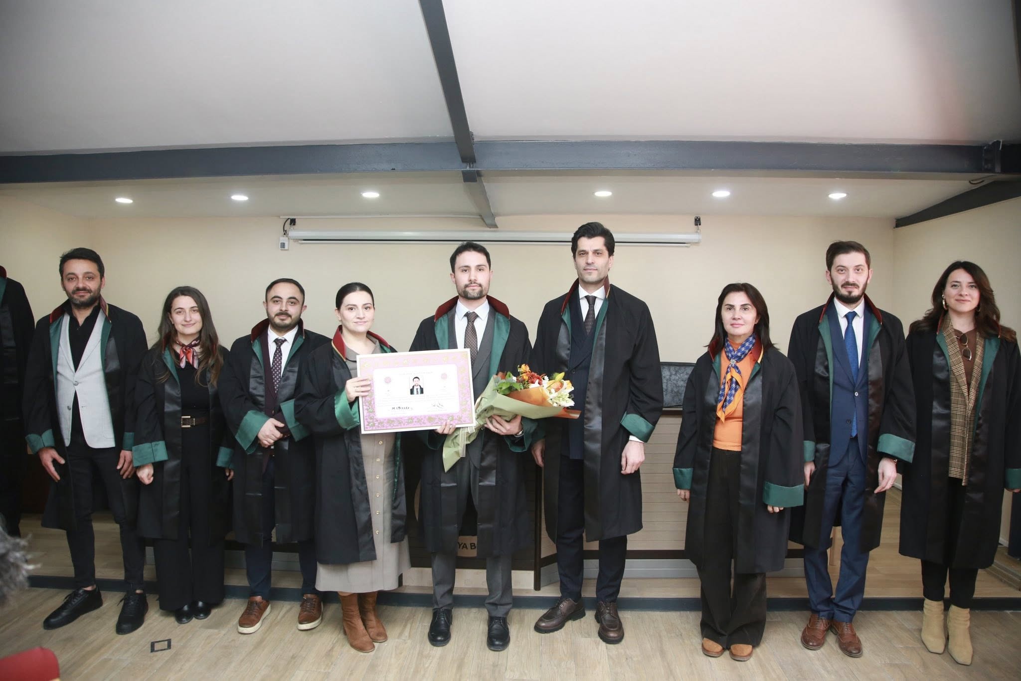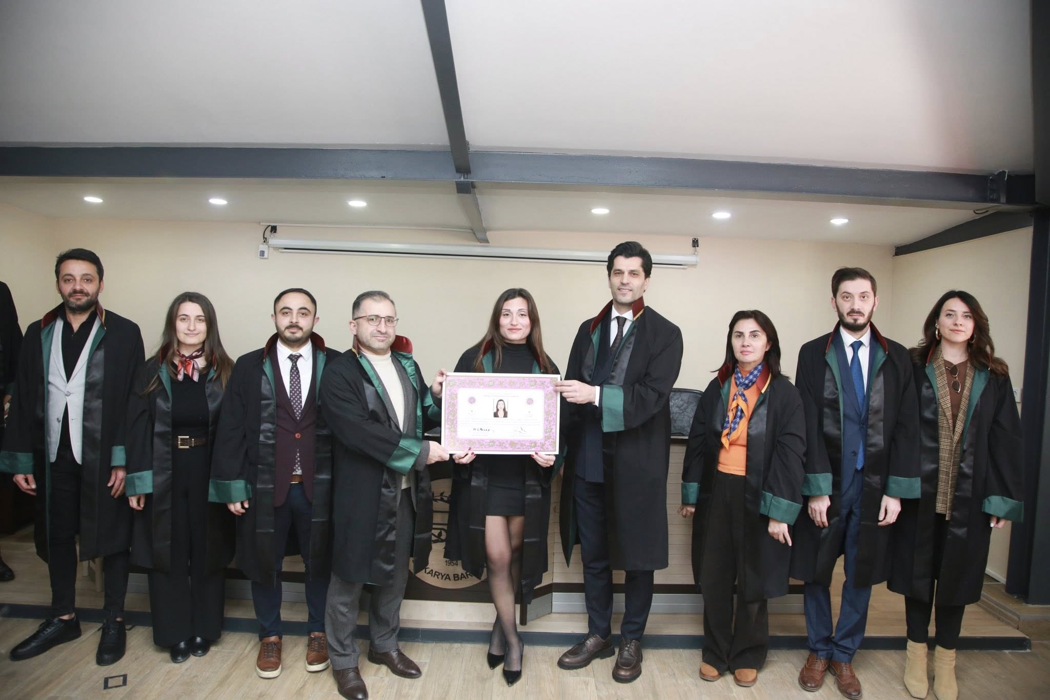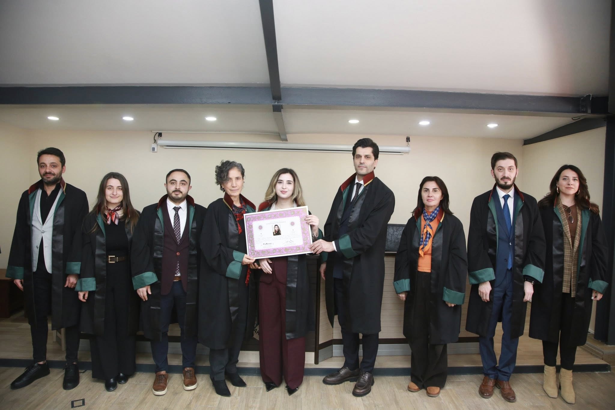 Staj dönemini başarıyla tamamlayan Nefise Demirbaş, Betül Yıldırım, Erkan Işık, Yunus Emre Aydoğan ve Ahmet Erciyas, avukatlık meslek yeminlerini edip cübbelerini giyerek ruhsatnamelerini aldılar.