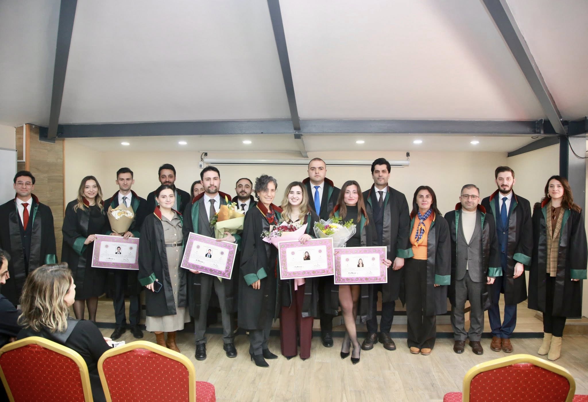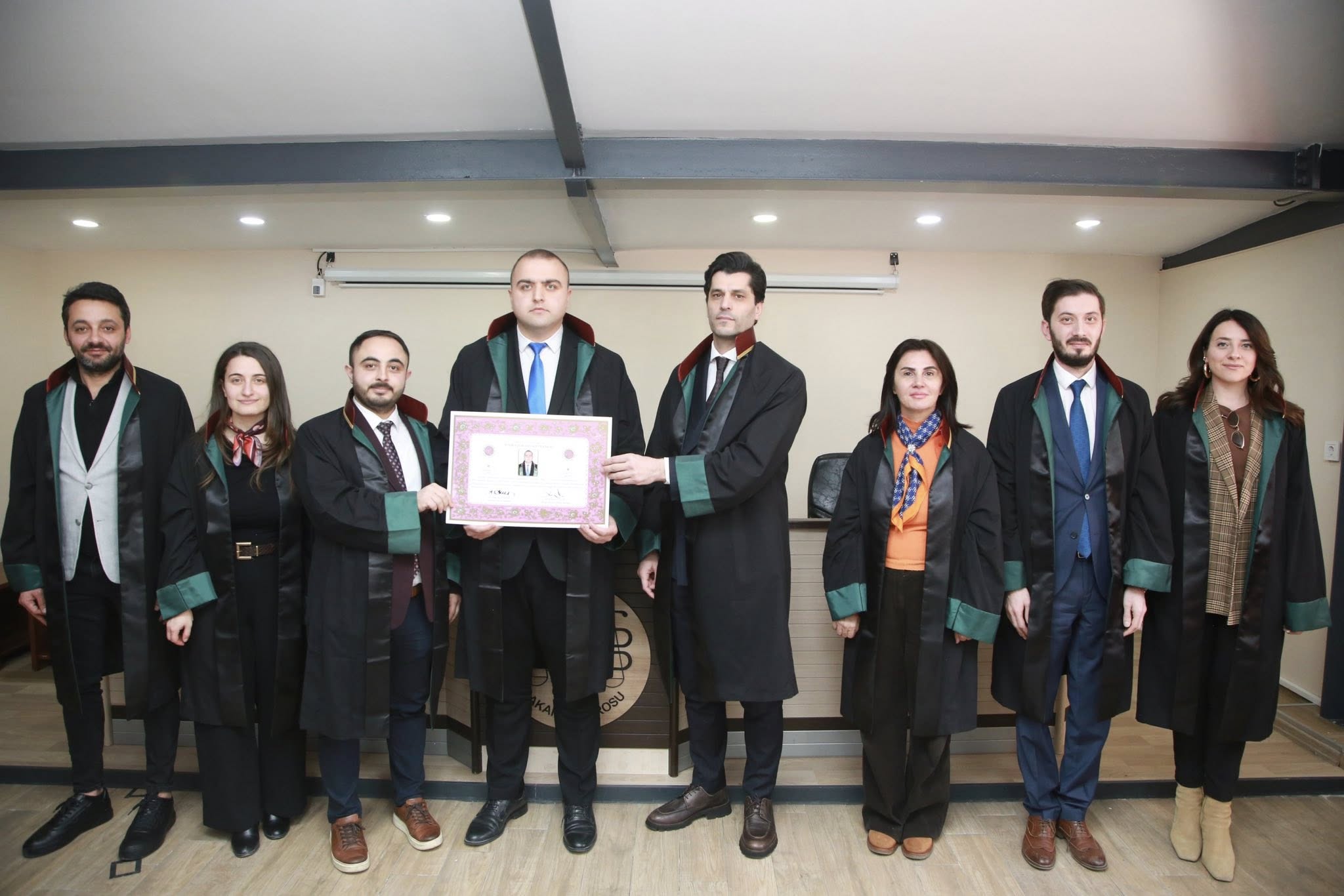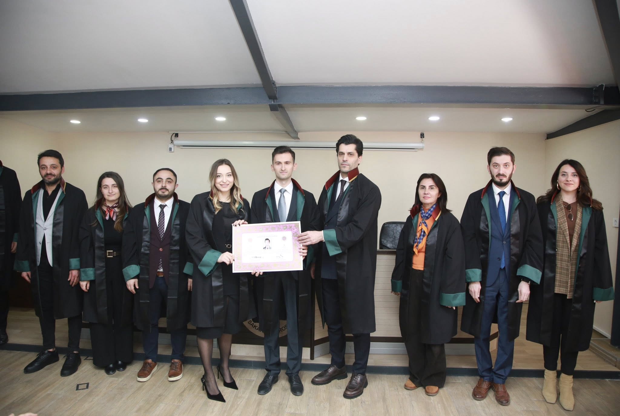 Staj dönemini başarıyla tamamlayan Nefise Demirbaş, Betül Yıldırım, Erkan Işık, Yunus Emre Aydoğan ve Ahmet Erciyas, avukatlık meslek yeminlerini edip cübbelerini giyerek ruhsatnamelerini aldılar.