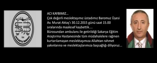 BAROMUZ ÜYESİ MESLEKTAŞIMIZ AV. MURAT AKTAŞ'I KAYBETTİK. 11.08.2017 1327 Görüntüleme 11.08.2017 1327 Görüntüleme