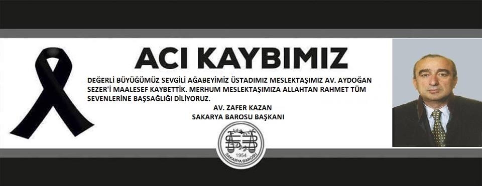 BAROMUZ ÜYESİ MESLEKTAŞIMIZ AV. AYDOĞAN SEZER'İ KAYBETTİK. 11.08.2017 1322 Görüntüleme 11.08.2017 1322 Görüntüleme
