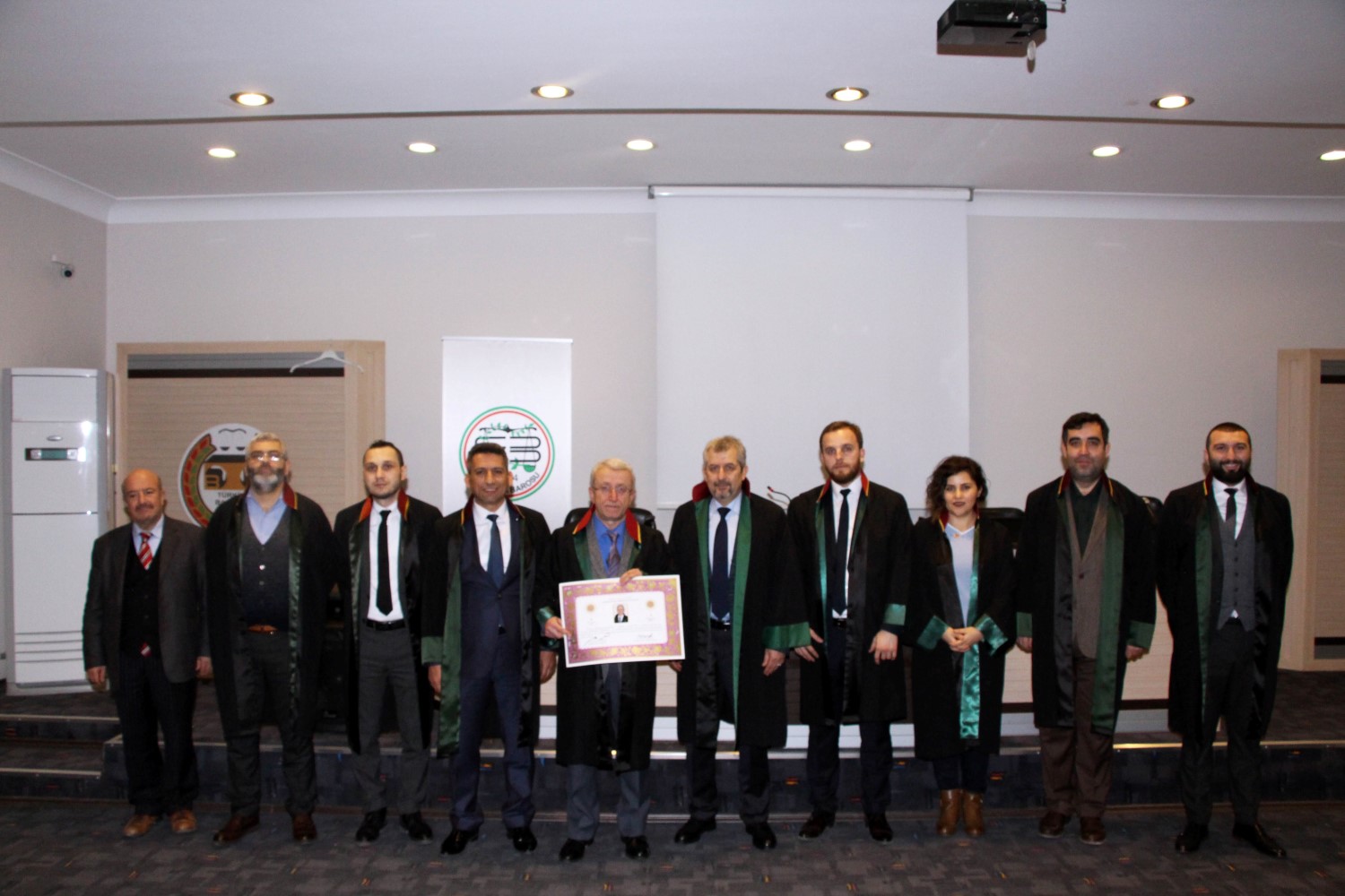 Sakarya Barosu’nda staj dönemini başarıyla tamamlayan stajyer avukat Mehmet Yağmur, meslek yemininin ardından cübbesini giyerek ruhsatnamesini aldı.