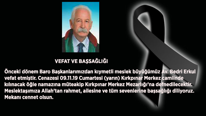 ÖNCEKİ DÖNEM BARO BAŞKANLARIMIZDAN AV. BEDRİ ERKUL'U KAYBETTİK