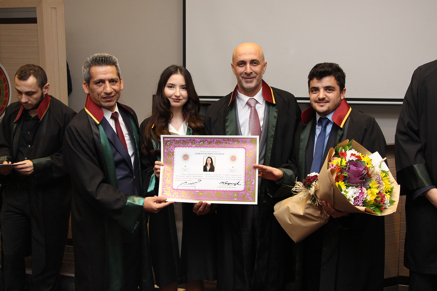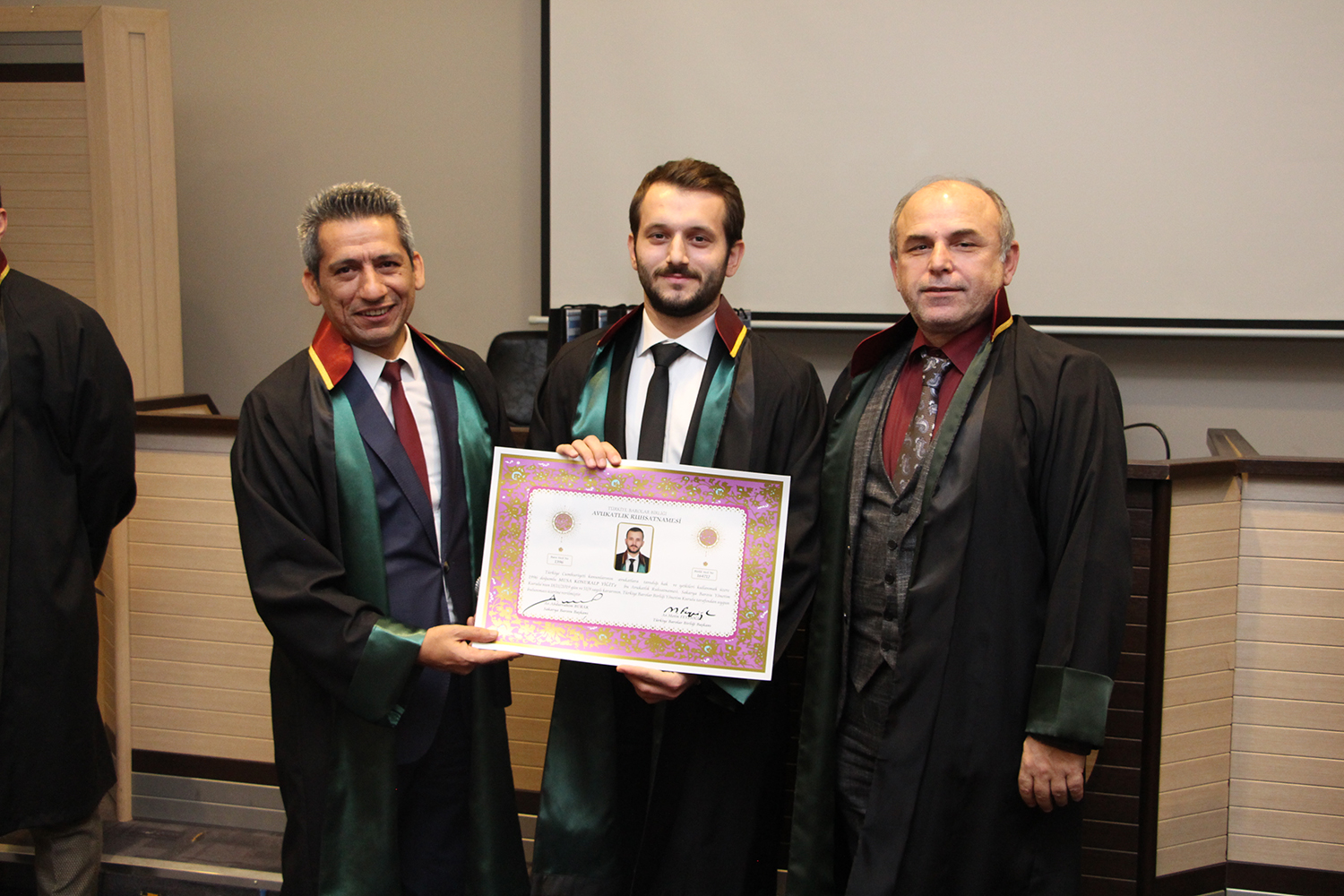 Staj dönemini başarıyla tamamlayan stajyer avukatlar; Serra Koç, Beyza Eroğlu, Nilgün Oyuncakçı, Sinem Yağır, Yunus Güney ve Musa Konuralp Yiğit, meslek yeminlerinin ardından cübbelerini giyerek ruhsatnamelerini aldı.