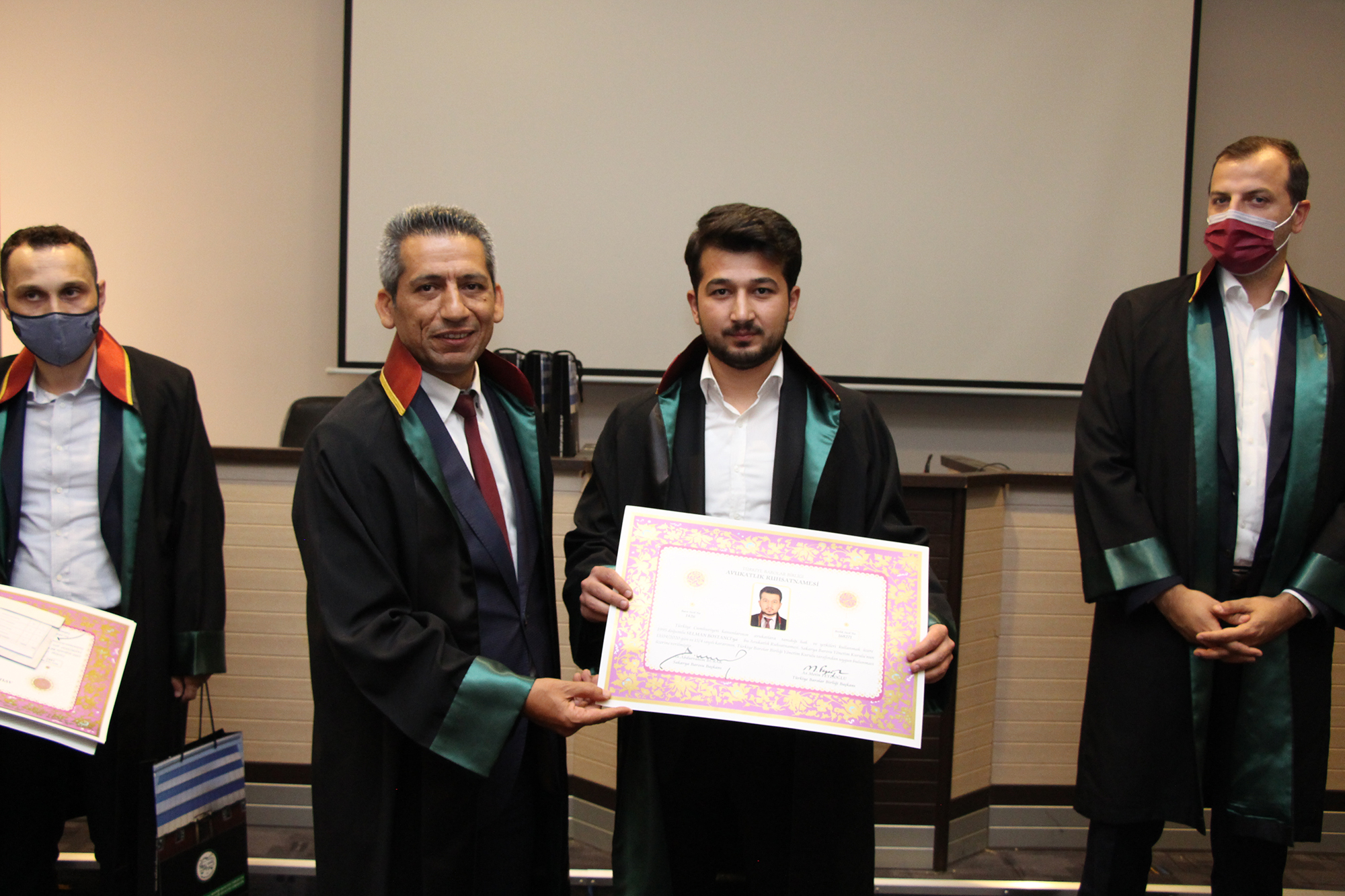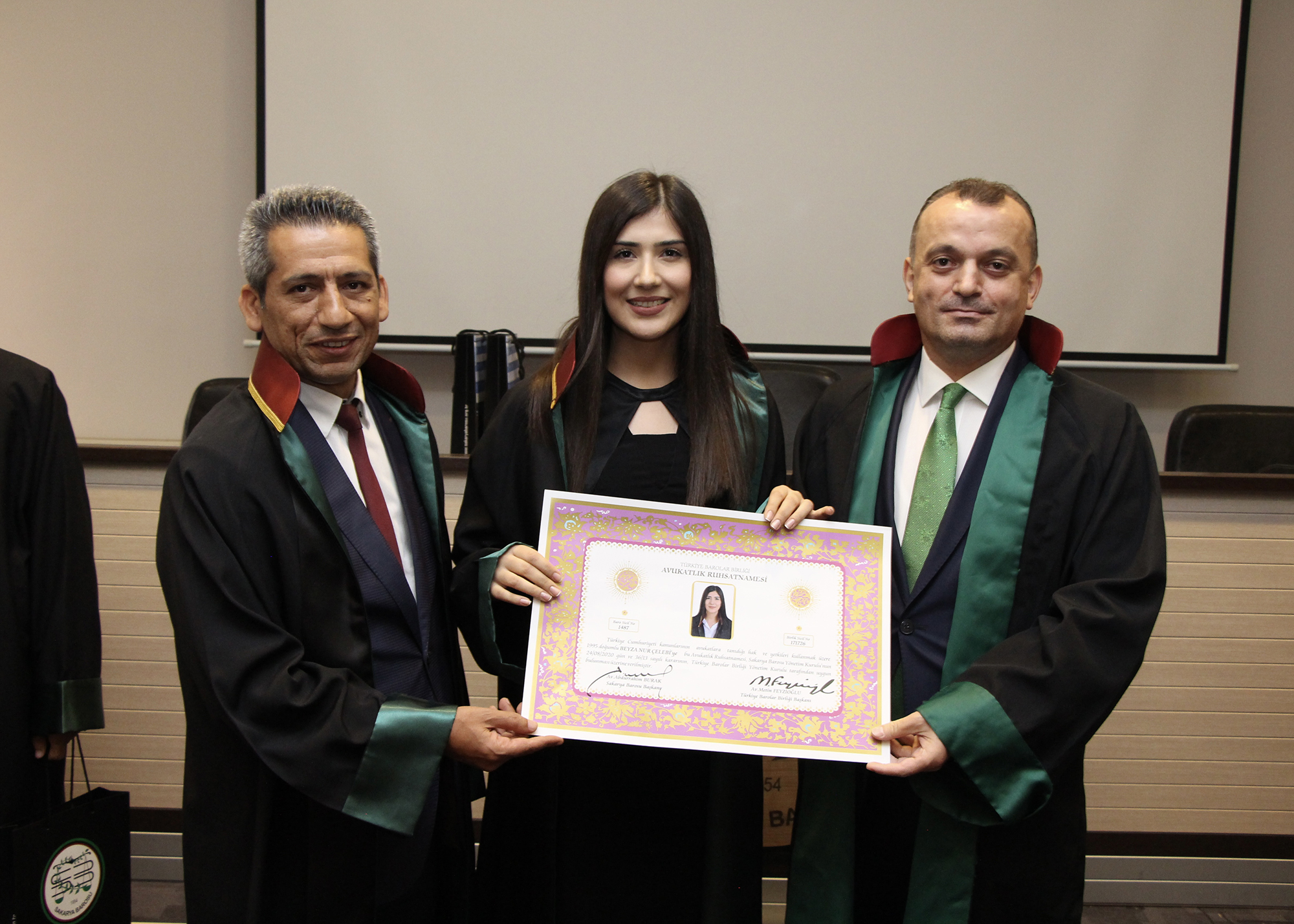 Staj dönemini başarıyla tamamlayan stajyer avukatlar; Muhammet Haşim Yiğit, Erkan Aydın, Veysel Ünal, Rumeysa Turan, Selman Bostancı, Beyza Nur Çelebi, Rumeysa Tokaç ve Nurallah Yıldırım, meslek yeminlerinin ardından cübbelerini giyerek ruhsatnamelerini aldı.