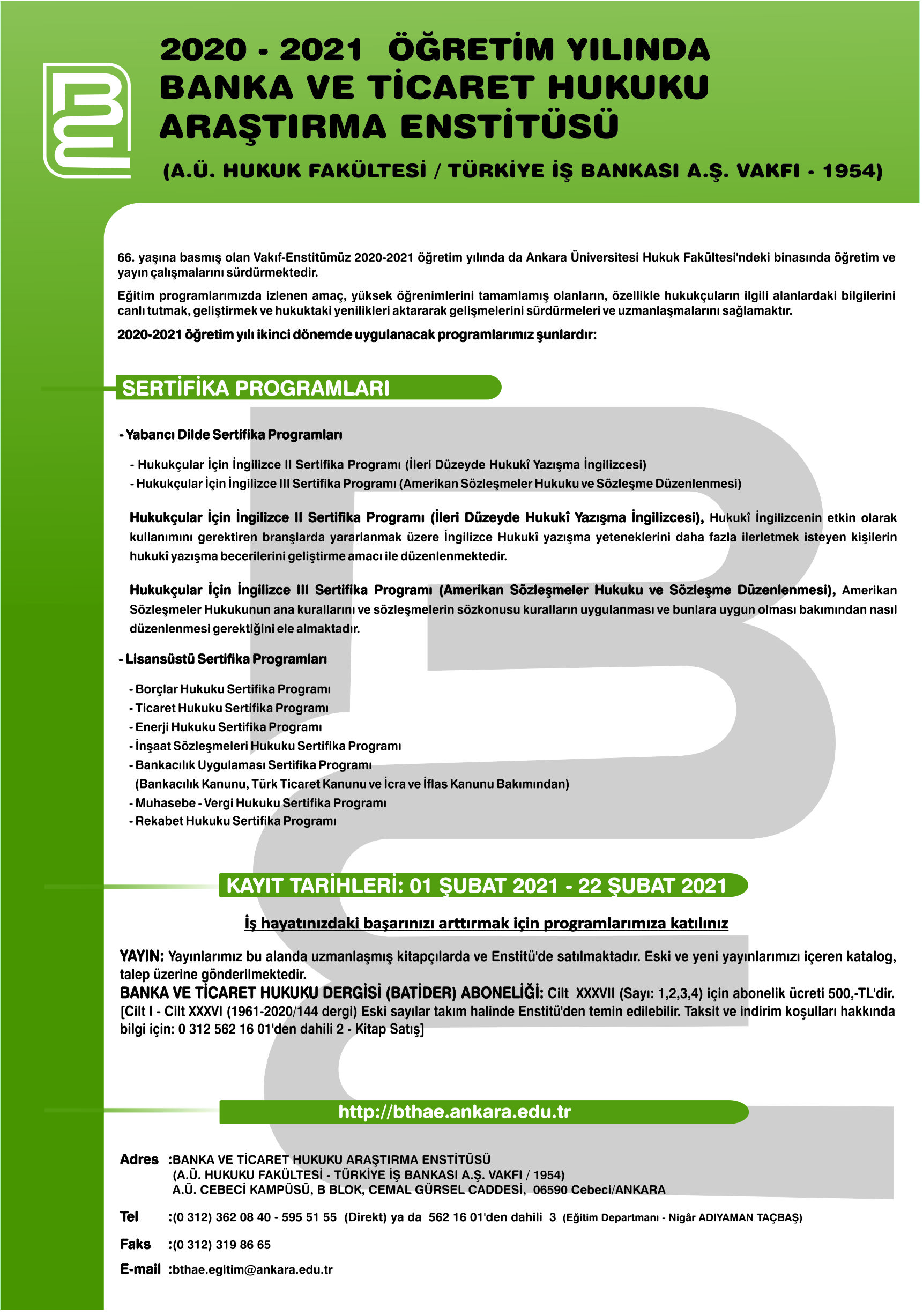 BANKA VE TİCARET ENSTİTÜSÜ SERTİFİKA PROGRAMI 21.01.2021 977 Görüntüleme Duyuruyu görmek için tıklayınız 21.01.2021 977 Görüntüleme
