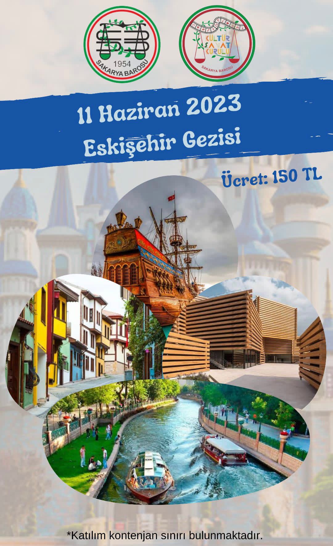 12:30 : Kurşunlu Camii – Lületaşı Müzesi- Atlıhan Çarşısı- Odunpazarı Evleri – Çağdaş Cam Sanatları Müzesi- Balmumu Müzesi – OMM – Porsuk Çayı- Sazova Parkı- Su Altı Müzesi- Haller Gençlik Merkezi