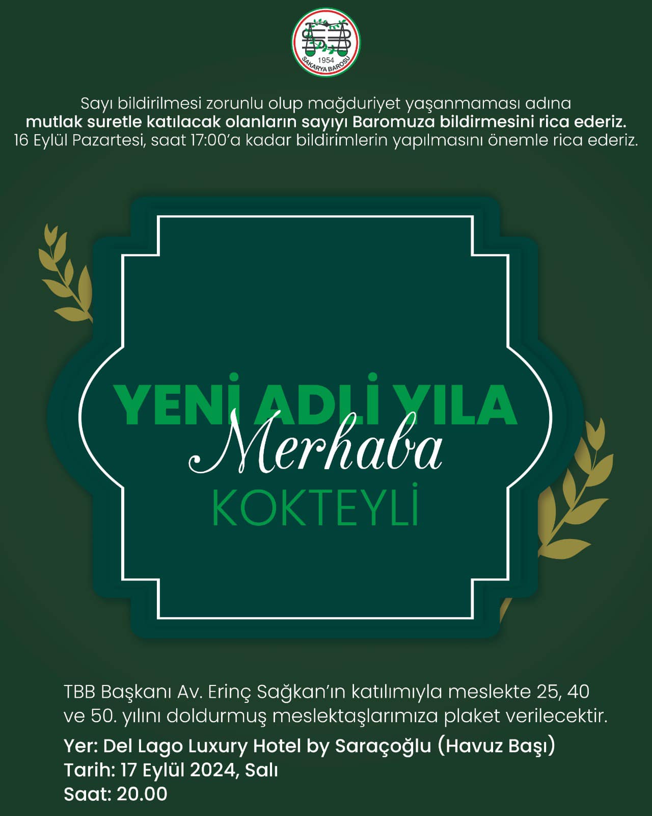 YENİ ADLİ YILA 'MERHABA' KOKTEYLİ 17.09.2024 20:00 Del Lago Luxury Hotel by Saraçoğlu 270 Görüntüleme