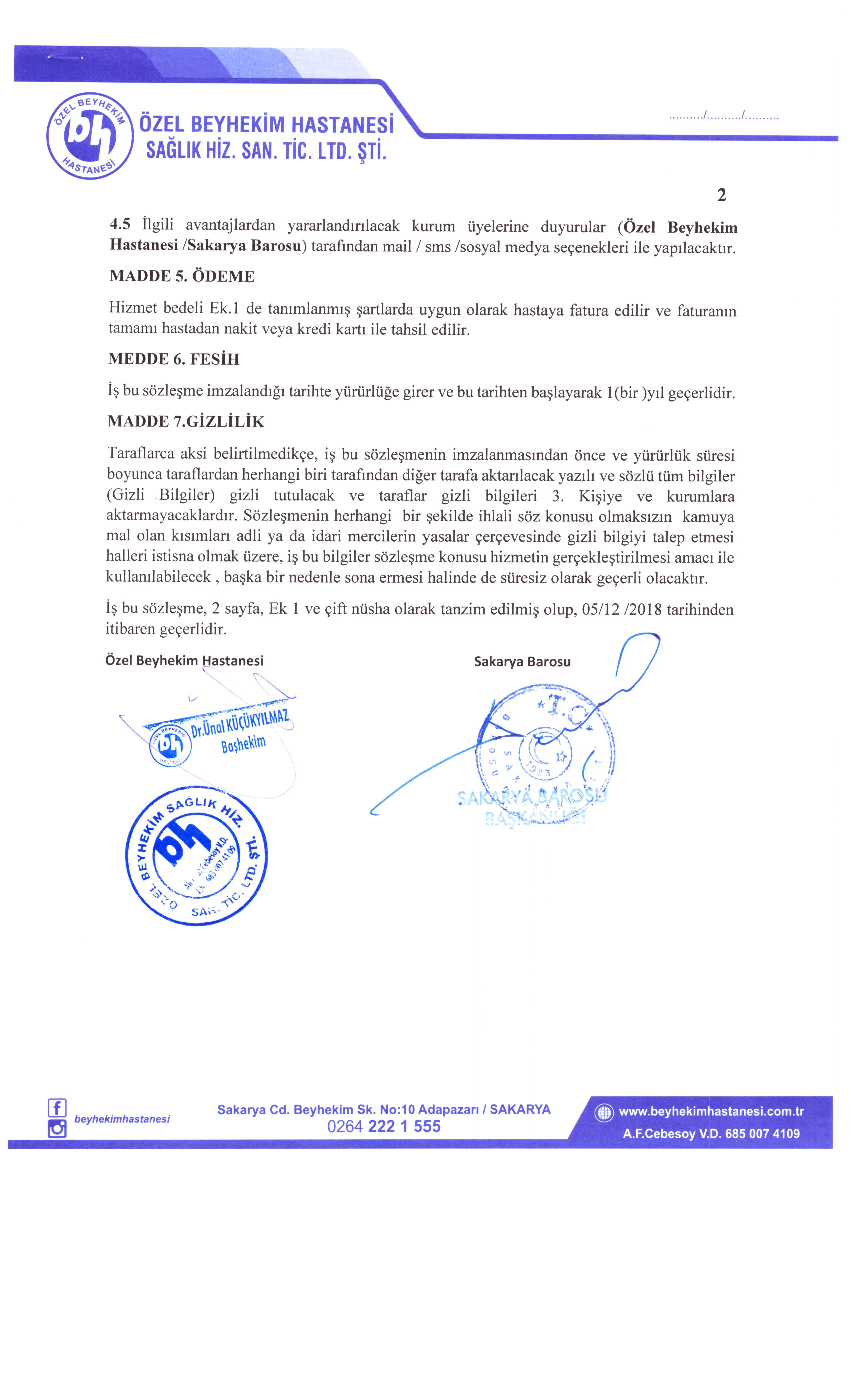 SAKARYA ÖZEL BEYHEKİM HASTANESİ İLE PROTOKOL İMZALANDI