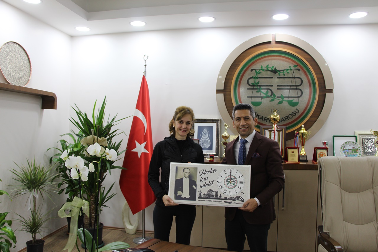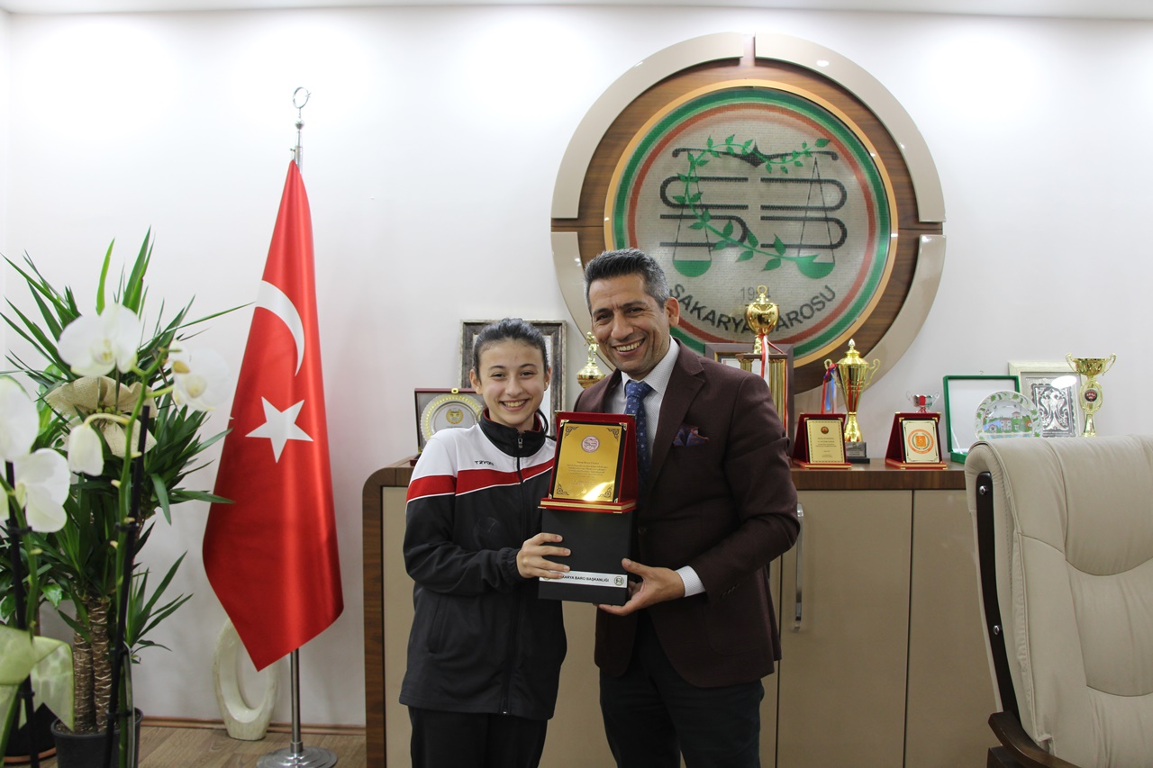 Aerobik Cimnastik dalında birçok madalya ve kupalar kazanan Sakaryalı sporcularımız Ahmet Meriç Turmamış, Ecem Barklı ve Berra Yazıcı Antrenörleri Semra Ediz, Sakarya Adliyesi çalışanı ve Ahmet Meriç Turmamışın babası Mesut Turmamış ile birlikte Baro Başkanı Av. Abdurrahim Burak’ı ziyaret ettiler.