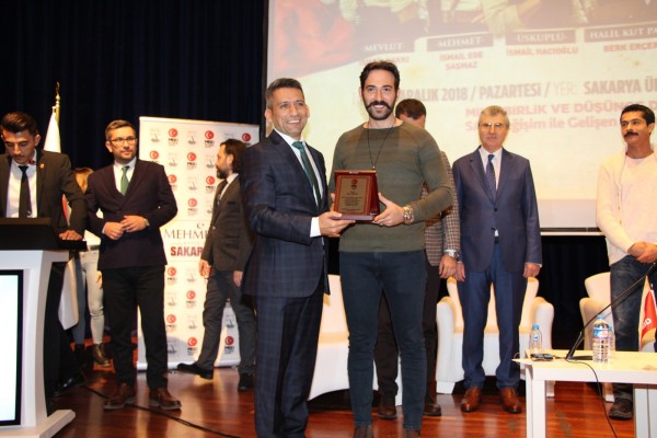 Dizi oyuncularından İsmail Hacıoğlu, İsmail Ege Şaşmaz, Berk Erçer ve İsmail Hakkı Ürün’ün katıldığı söyleşide Sakarya Barosu Başkanı Av. Abdurrahim Burak tüm oyuncuları ve Yapımcı-Senaristi Mehmet Bozdağ’ı başarılarından dolayı tebrik ederek, plaket takdim etti.