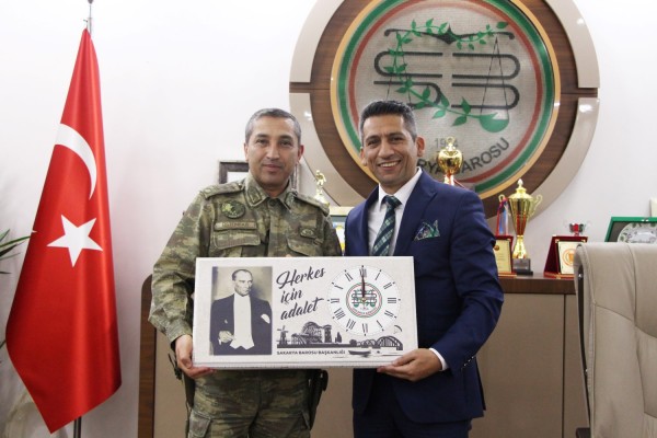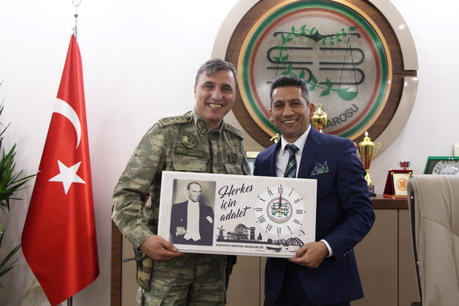 Başkan Burak ise ziyaretten duyduğu memnuniyeti ifade ederek, Albay Salih Üstündağ ve Kurmay Başkan Vekili Piyade Albay Güray Ezgi’ye Sakarya Barosu’nun Adalet Saatini hediye etti.