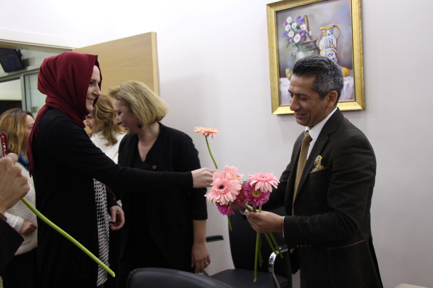 Ziyarette Türk Kadınlar Birliği Sakarya Şube Başkanı Tevhide Yağan, Başkan Yardımcısı Nurçin Süzen ve Yönetim Kurulu Üyeleri, Sakarya Barosu Başkanı Av. Abdurrahim Burak’a ‘Gerbera’ çiçeği vererek hayırlı olsun dileklerinde bulundular.