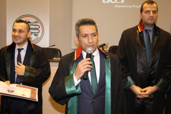 Törenin açılış konuşmasını yapan Sakarya Barosu Başkanı Av. Abdurrahim Burak: “Genç meslektaşlarımızın bir sorunları, bir problemleri olduğunda bizler hep yanlarında olduk ve olmaya da devam edeceğiz. Hayatın en zor anlarında biz avukatlar devreye gireriz. Hakkın yerine gelmesini sağlarız. Adalet için mücadele ederiz. Hak ve Hürriyetlere aşığızdır. Bu yüzden genç meslektaşlarım, hukuka, adalete, insan haklarına ve hakkaniyete çok katkı sağlayacaklar. Bundan hiç şüphem yok” dedi.