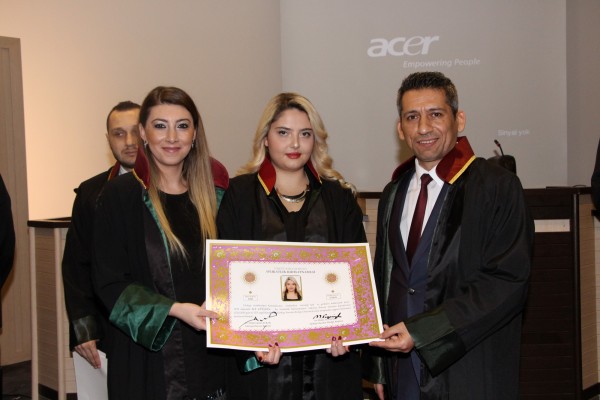 Staj evresini başarıyla tamamlayan stajyer avukatlara ruhsatnameleri, Başkan Burak ile birlikte yanlarında staj yaptığı avukatlar; Av. Dilara Özden ve Av. Deniz Dinçel tarafından takdim edildi.