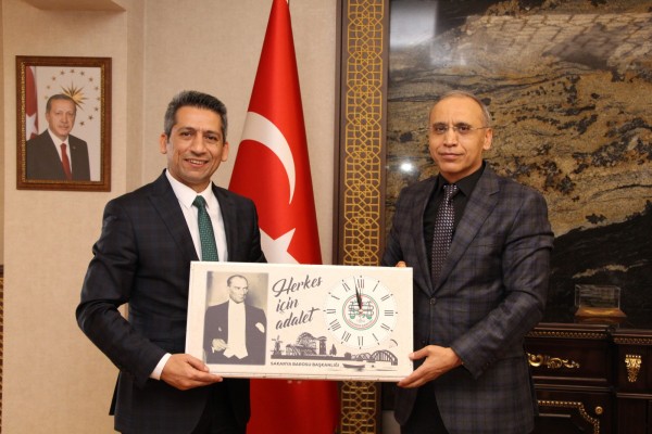Samimi ve sohbet havasında gerçekleşen ziyarette Başkan Burak, kurumlar arası dayanışmaya her zaman önem verdiklerini, birlik ve beraberlik içerisinde uyumlu bir şekilde çalışmalarını sürdürdüklerini kaydetti. Ayrıca misafirperverliği için de Kaya’ya teşekkür eden Burak, Sakarya Barosu’na ait ‘Adalet Saati’ hediye etti.