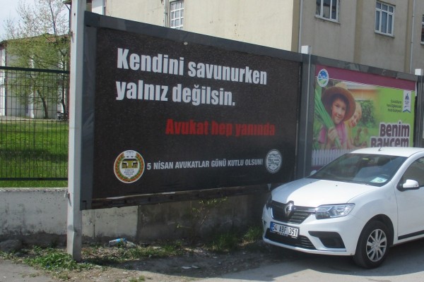 Türkiye Barolar Birliği’nin de katkılarıyla Sakarya Barosu, ‘AVUKAT HEP YANINDA’ ve ‘ADALET İÇİN’ başlıkları altında yaptığı çalışmalar ile Sakarya’nın farklı bölgelerinde ilan verdiği billboard görselleri ile konuya dikkat çekti.