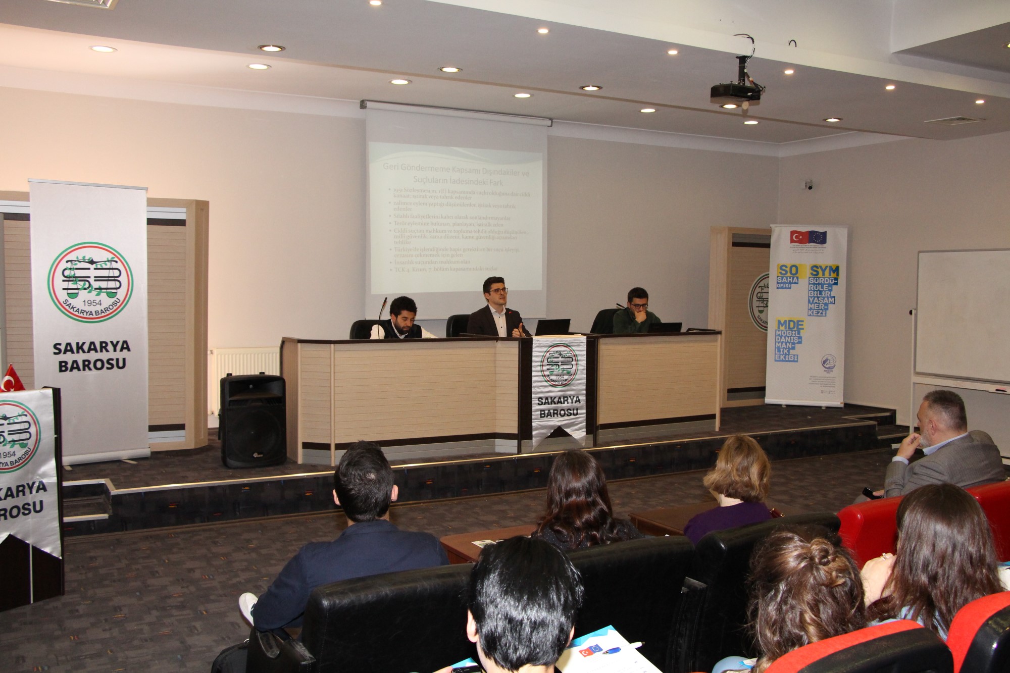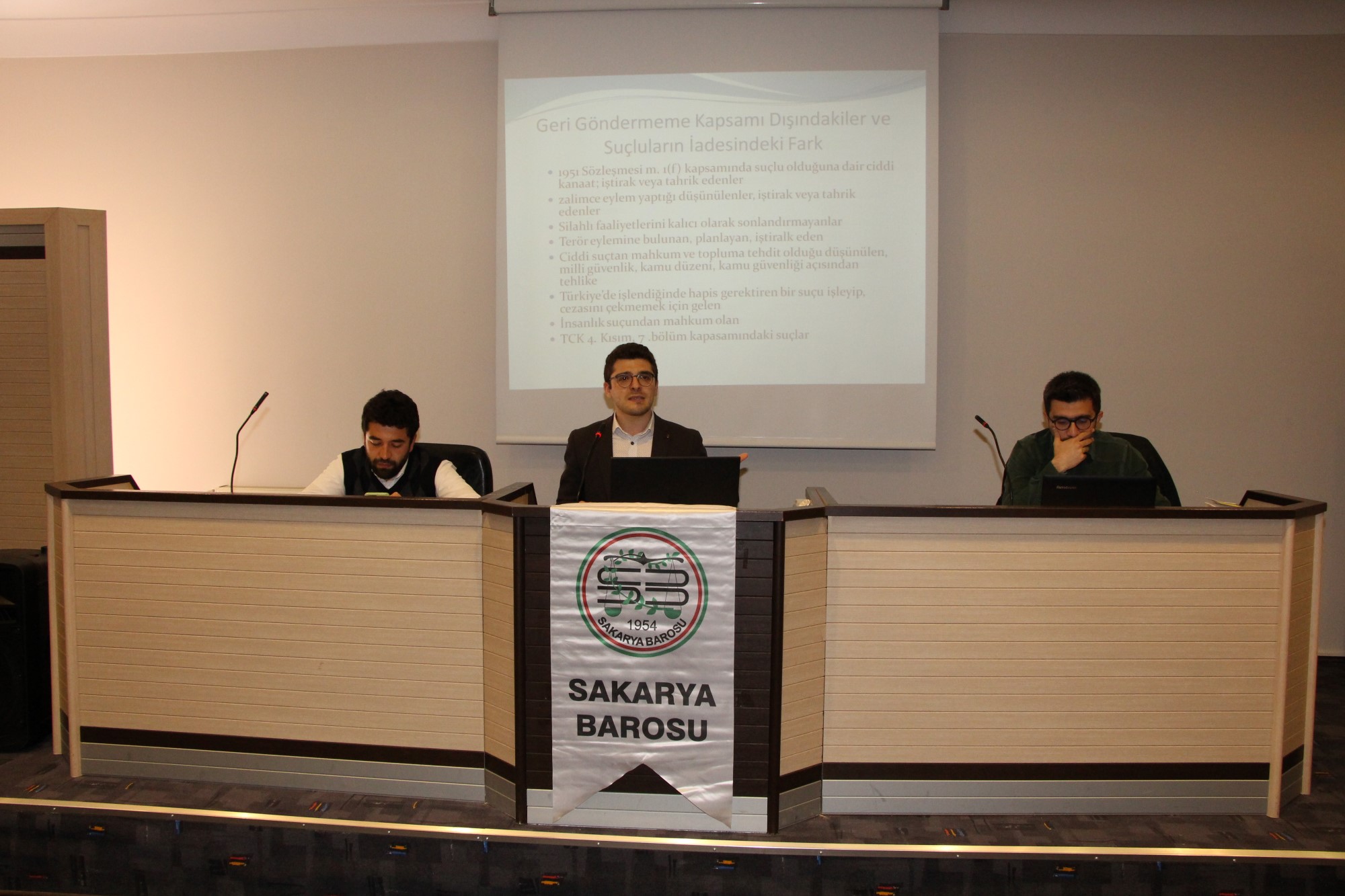 Sakarya Barosu ve Mülteci Destek Derneği (MUDEM) iş birliği ile Sakarya Barosu Konferans Salonu’nda, ‘Mülteci Hukuku’ konulu eğitim düzenlendi.
