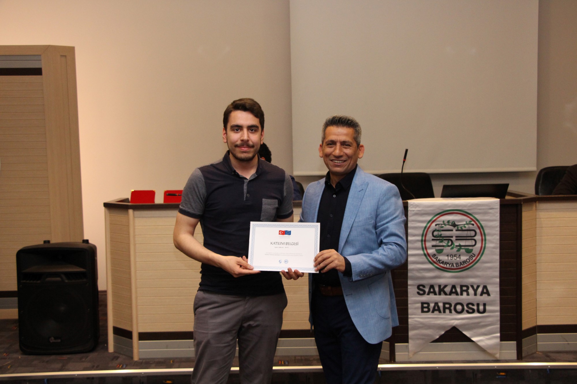 Eğitimin sonunda katılım belgesi almaya hak kazanan avukatlara, belgelerini Sakarya Barosu Başkanı Av. Abdurrahim Burak takdim etti. Katılım belgelerinin takdiminden önce kısa bir konuşma yapan Başkan Av. Abdurrahim Burak, katılan tüm meslektaşlarına teşekkür etti. Başkan Burak, “Hafta sonu değerli vakitlerinden zaman ayırarak eğitime katılan tüm meslektaşlarıma teşekkür ediyorum ve görüyorum ki önemli bir konu olan Mülteci Hukuku eğitimine meslektaşlarımızın yoğun katılım göstermeleri bizleri de fazlasıyla memnun etti. Sakarya Barosu olarak mesleğimize yönelik katkı sağlayacak her alanında eğitimler vermeye devam edeceğiz” dedi.
