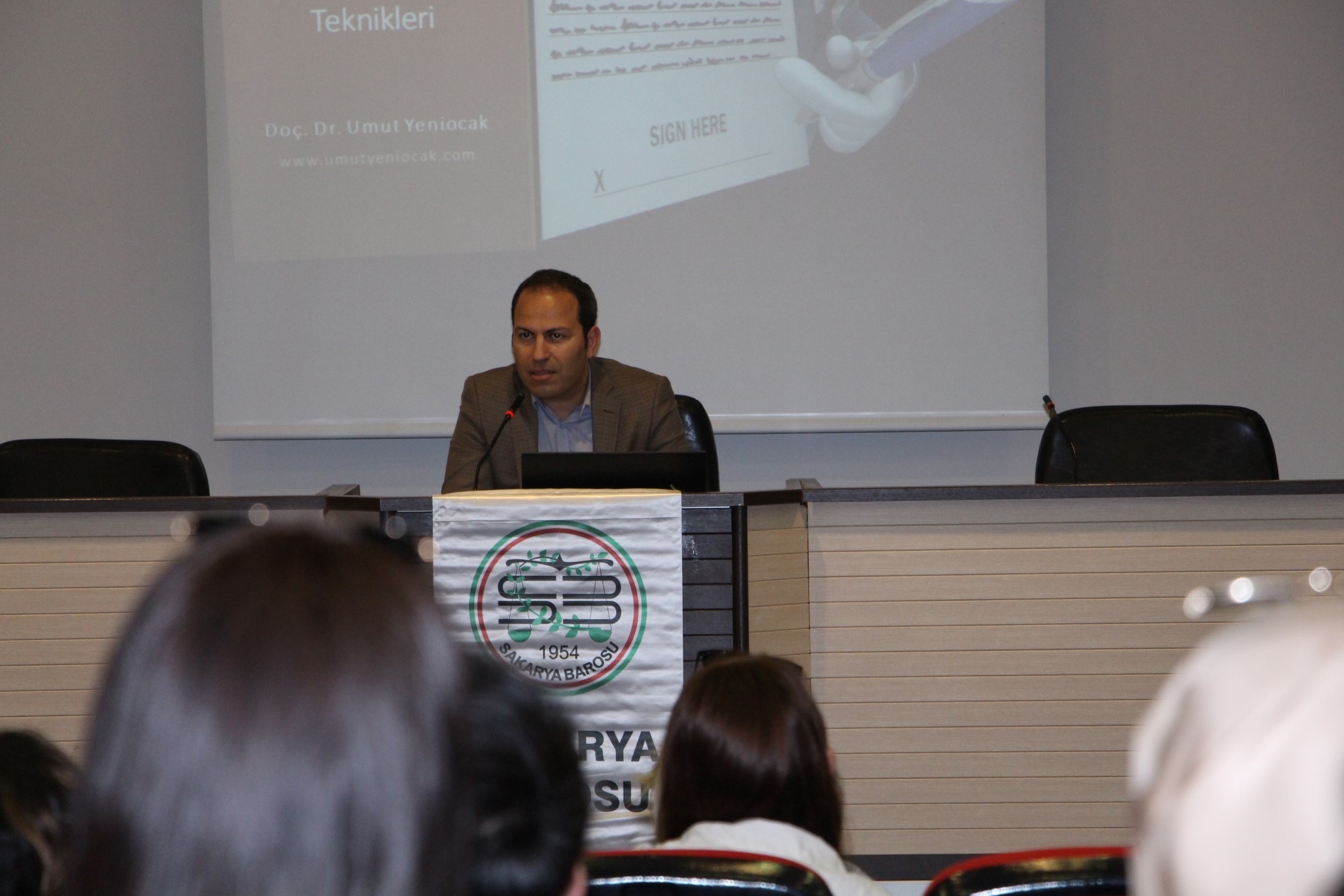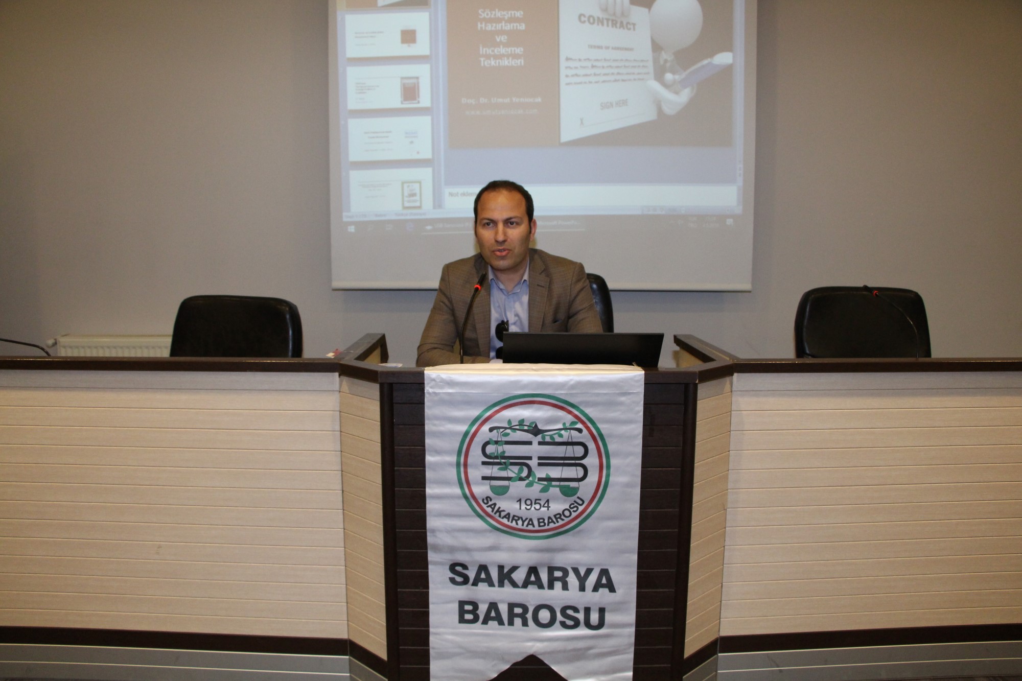 Sakarya Barosu Genç Avukatlar Meclisi’nin düzenlediği ve konuşmacı olarak Doç. Dr. Av. Arb. Umut Yeniocak’ın katıldığı ‘Sözleşme Hazırlama ve İnceleme Teknikleri eğitimi, Baro Konferans Salonu’nda verildi.