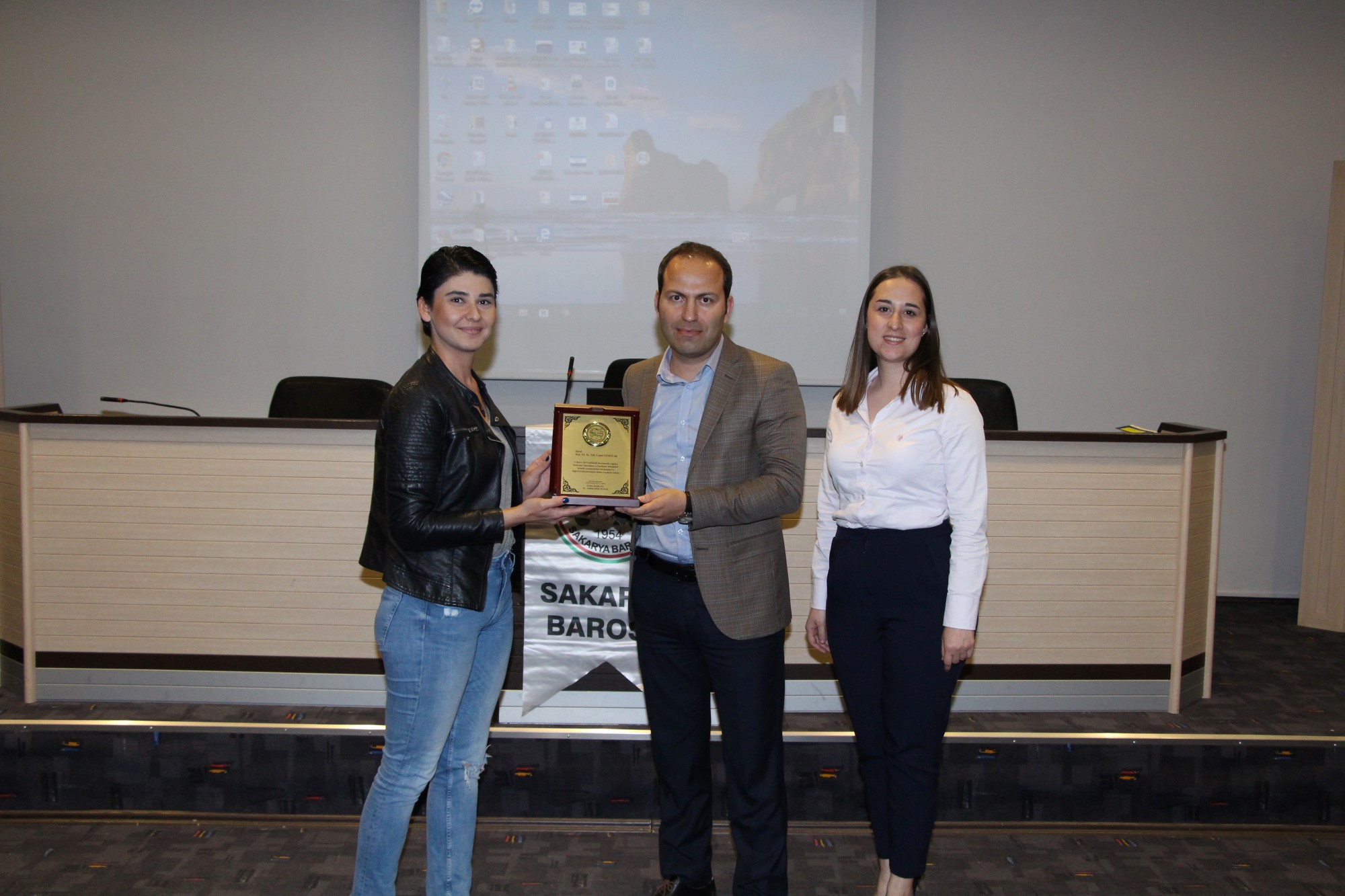 Eğitimin sonunda, Sakarya Barosu Genç Avukatlar Meclisi Başkan Yardımcısı Av. Ayşe Macuncu ve Genel Sekreter Av. Erva Nalbantoğlu, Yeniocak’a katılımları ve katkılarından dolayı teşekkür ederek, plaket takdim etti.
