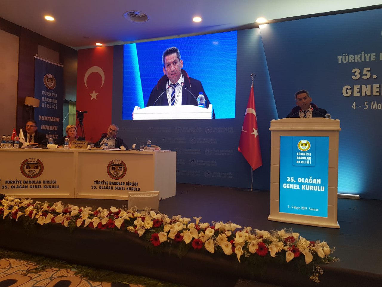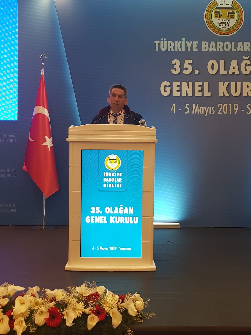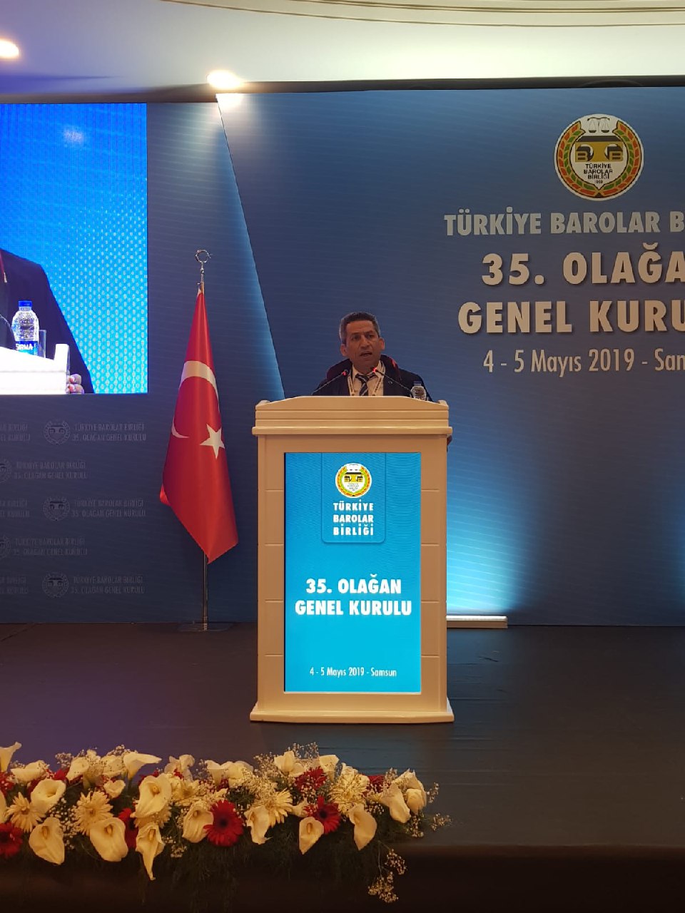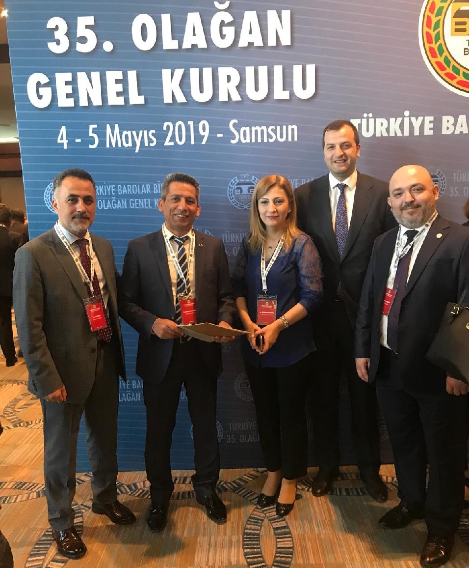 Sakarya Barosu Başkanı Av. Abdurrahim Burak, Baro Delegeleri; Av. Erdal İnce, Av. Ahmet Nalbant, Av. Elif Erdem Düzgün ve Sayman Av. Talha Toçoğlu, Samsun’da gerçekleştirilen Türkiye Barolar Birliği 35. Olağan Mali Genel Kurul’una katıldı. Toplantıda konuşan Sakarya Barosu Başkanı Av. Abdurrahim Burak, barolar ve meslektaşlar arasından birlik, beraberliğe vurgu yaparak, meslek sorunlarına çözüm önerileri sundu.