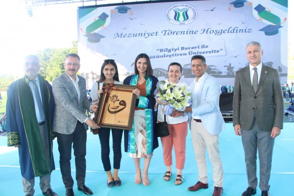 Törenin sonunda diplomalarını alan öğrenciler, kep ve cübbelerini giyerek, mezun olmanın verdiği mutluluk ile keplerini havaya attılar.