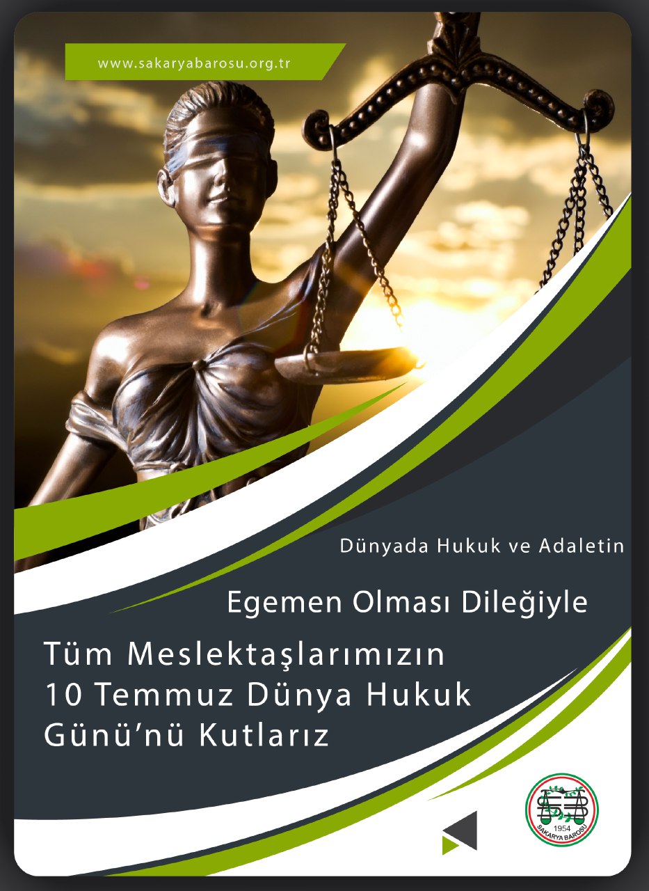 Dünyada hukuk ve adaletin egemen olması dileğiyle tüm meslektaşlarımızın 10 Temmuz Dünya Hukuk Günü'nü kutlarız.