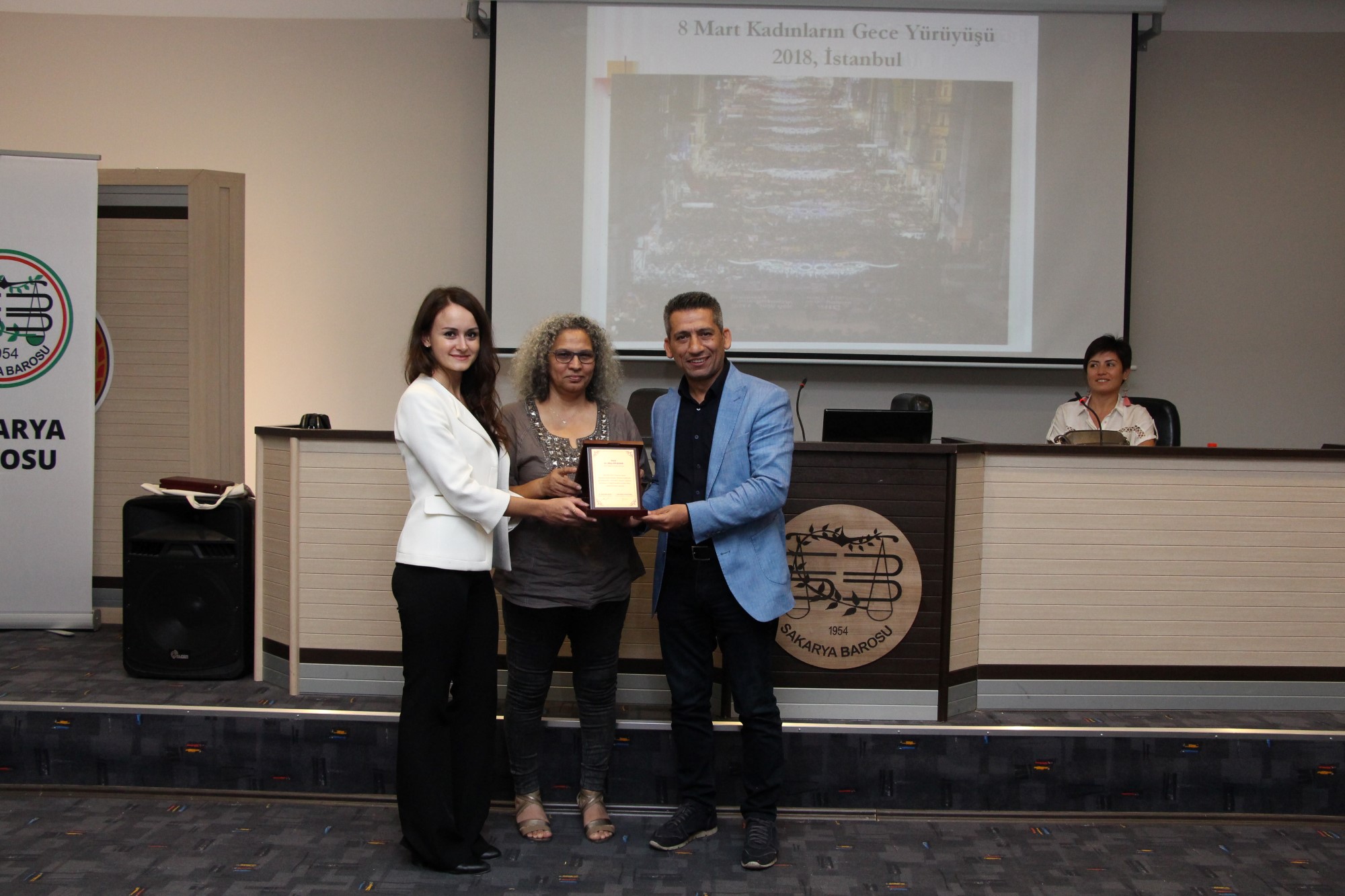 Çalıştayın sonunda, Sakarya Barosu Başkanı Av. Abdurrahim Burak, Kadın Hakları Merkezi Av. Betül Uruk ve Merkez Başkan Yardımcısı Av. Hilal Gür, konuşmacılara katkılarından dolayı teşekkür ederek, plaket takdim etti.