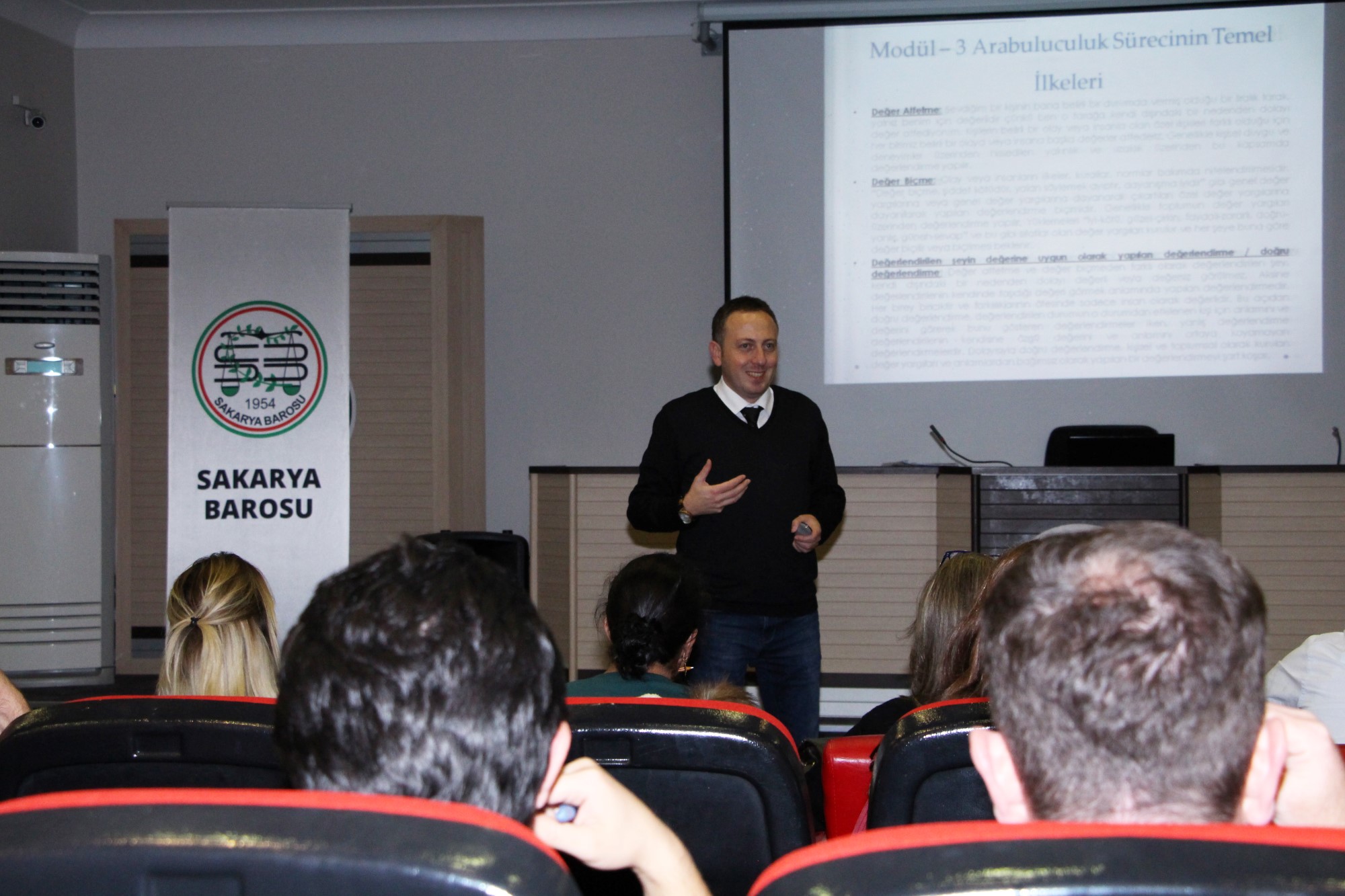 Sakarya Barosu tarafından Arabuluculuk Eğitimi düzenlendi. 24 Kasım’da yapılacak Arabuluculuk sınavına hazırlık amaçlı düzenlenen eğitim, Baro’nun Konferans Salonu’nda gerçekleştirildi. 2 gün süren eğitimi Sakarya Üniversitesi (SAÜ) Hukuk Fakültesi Dekan Yardımcısı Dr. Öğr. Üyesi Sezercan Bektaş ve Gaziantep Barosu’ndan Av. Arb. Seyhan Fesli verdi.