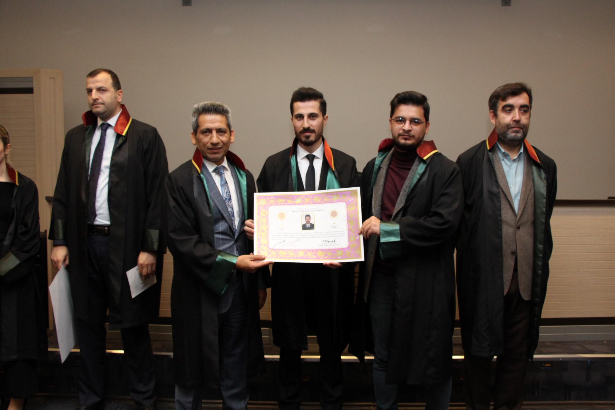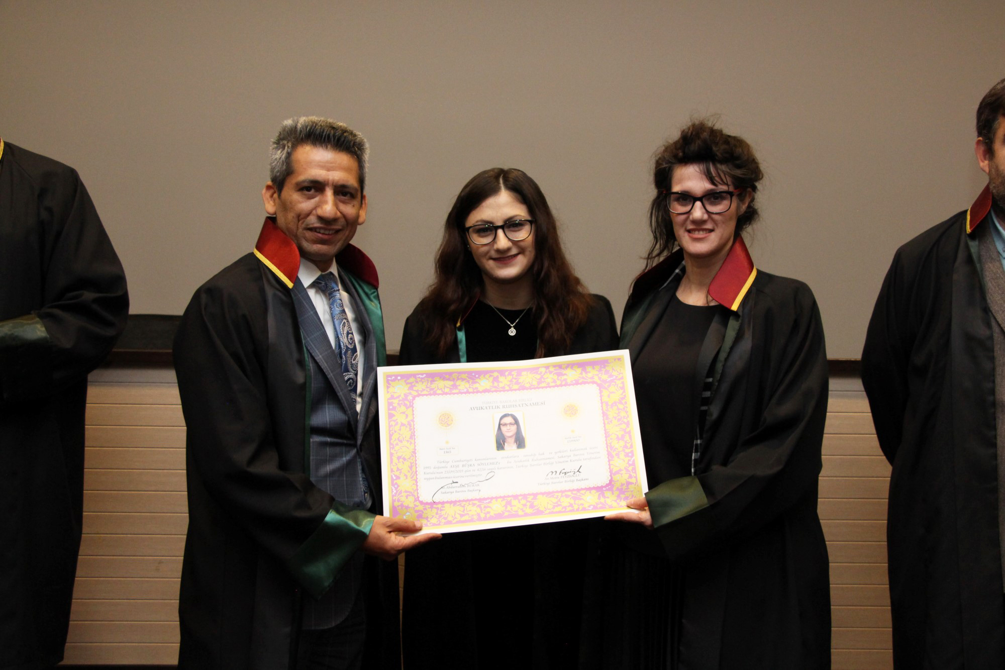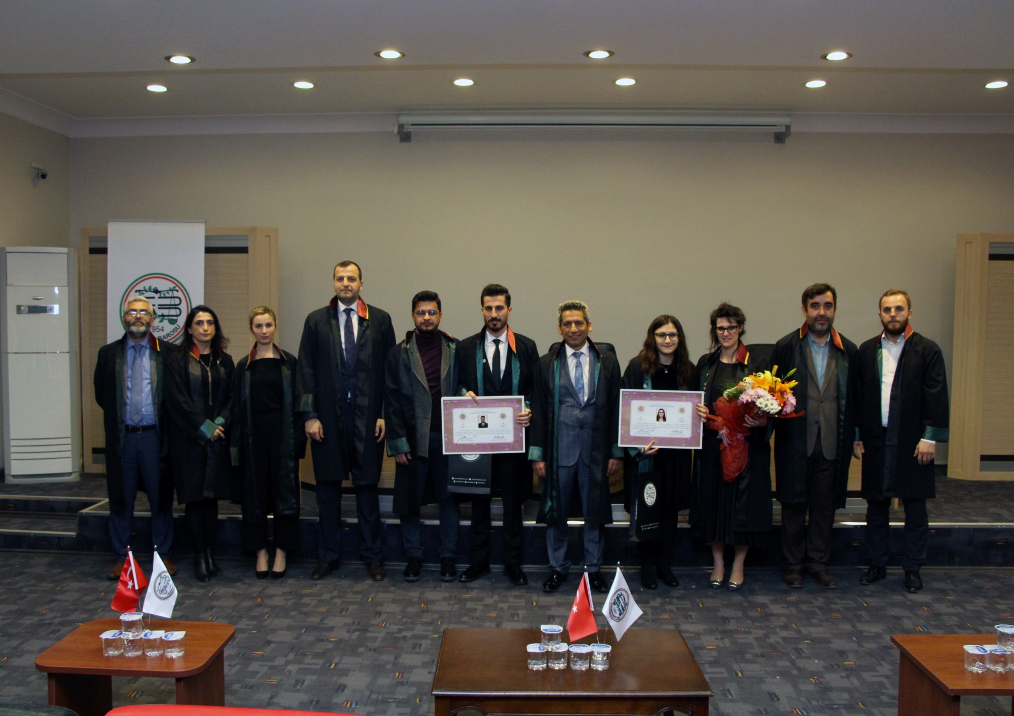 Staj dönemini başarıyla tamamlayan stajyer avukatlar; Şirzat İlçi ve Ayşe Büşra Söylemez, meslek yeminlerinin ardından cübbelerini giyerek ruhsatnamelerini aldı.