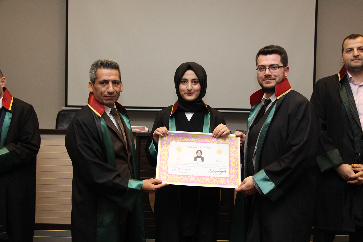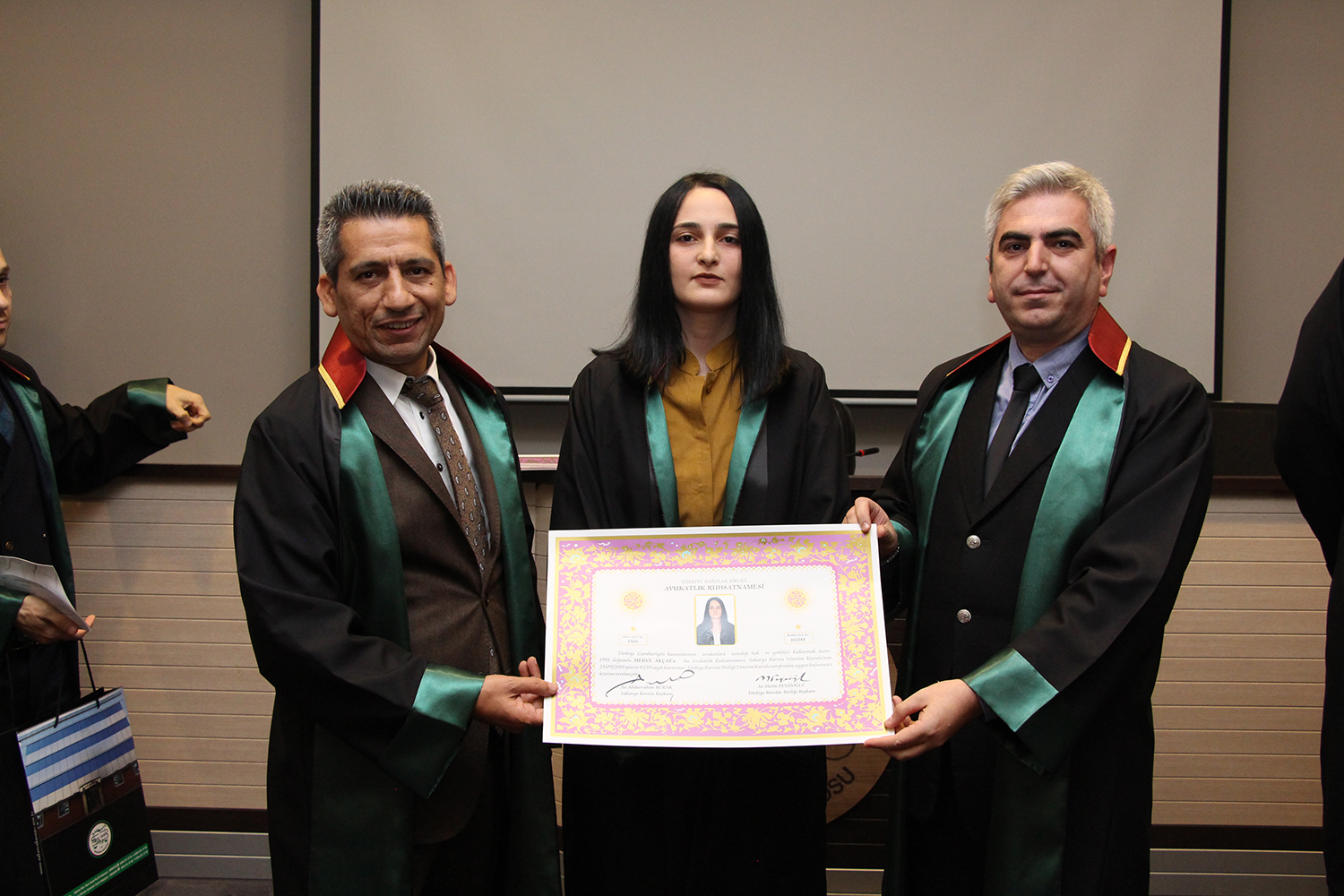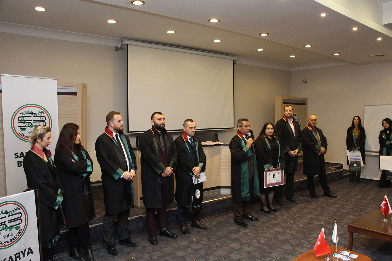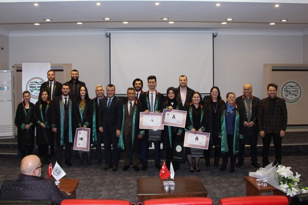 Staj dönemini başarıyla tamamlayan stajyer avukatlar; Merve Akçay, Elanur Berber, Meltem Kabadayı ve Ebubekir Ağbaba, meslek yeminlerinin ardından cübbelerini giyerek ruhsatnamelerini aldı.