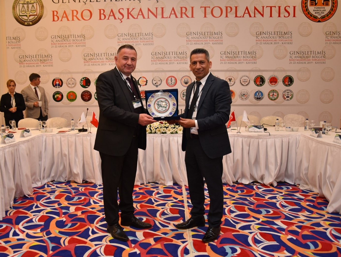 Başkan Burak toplantının sonunda, Kayseri Barosu Başkanı Av. Cavit Dursun’a güzel ev sahipliği için teşekkür ederek, Sakarya Barosu logolu tabak takdim etti.