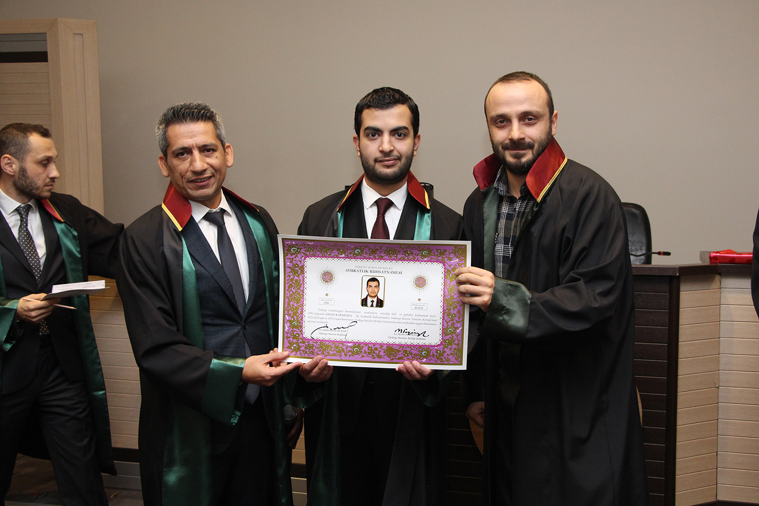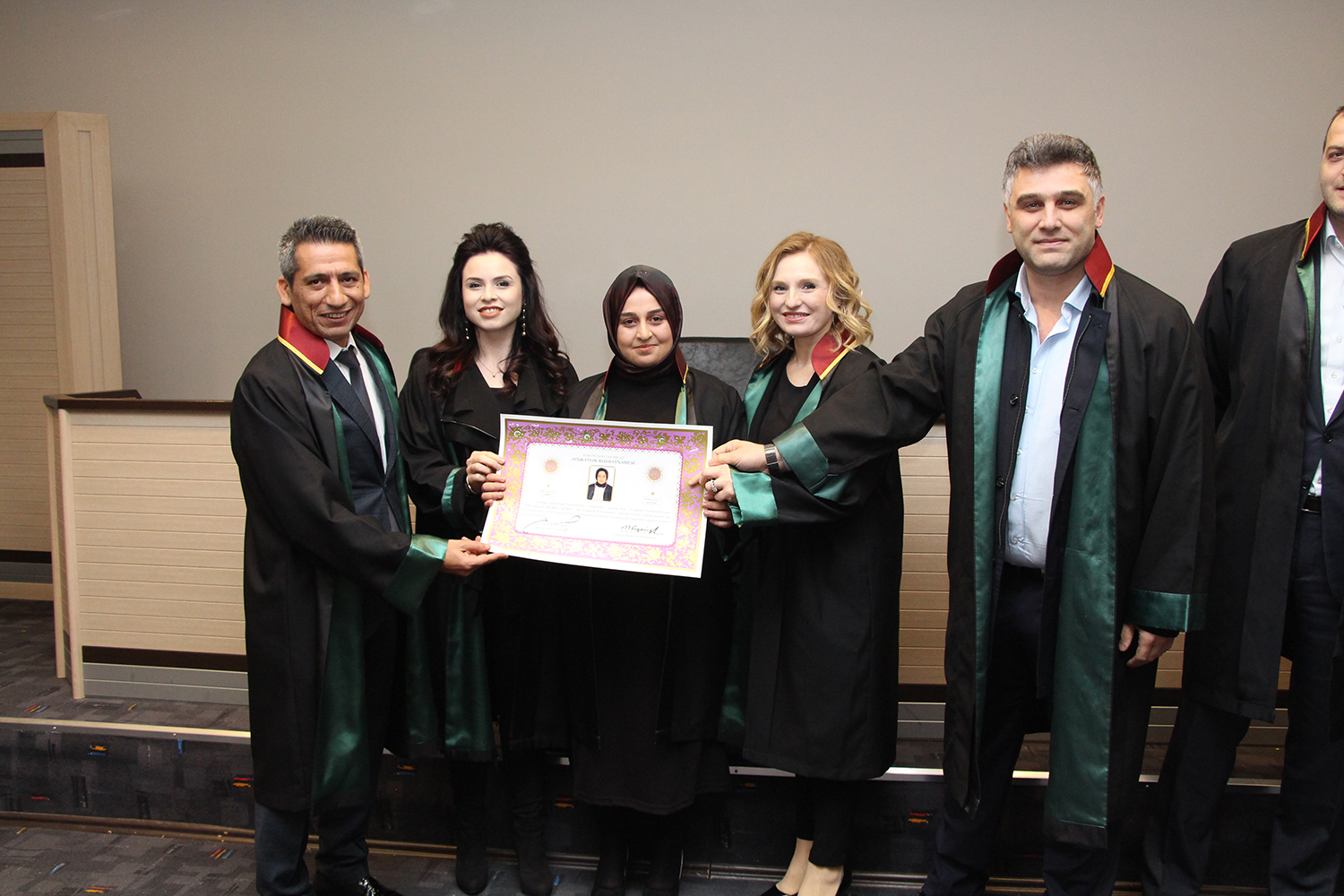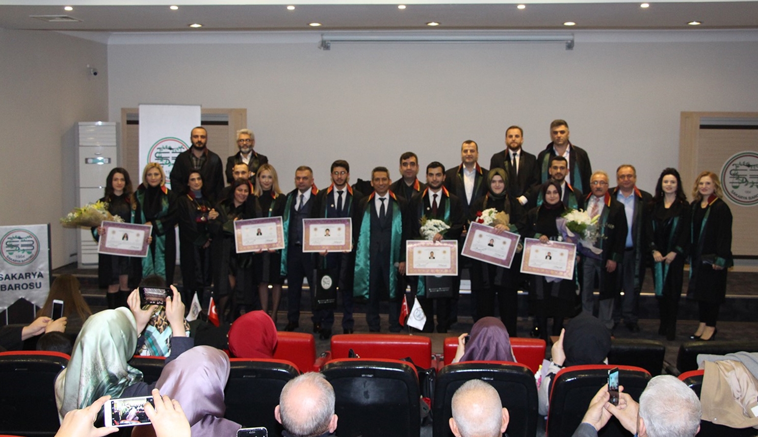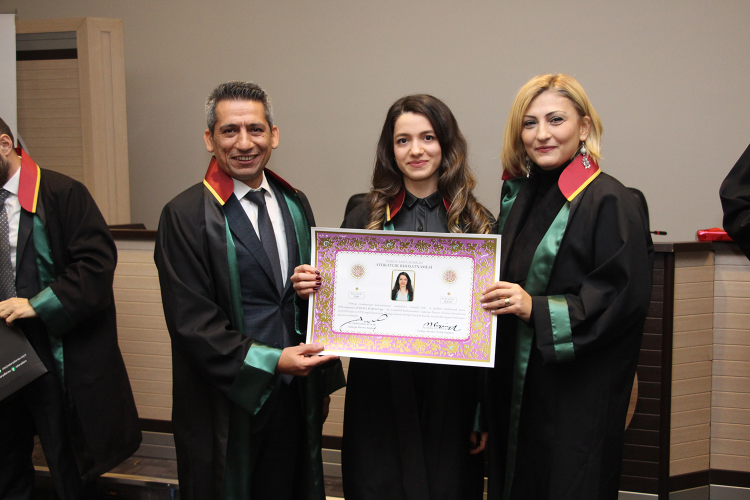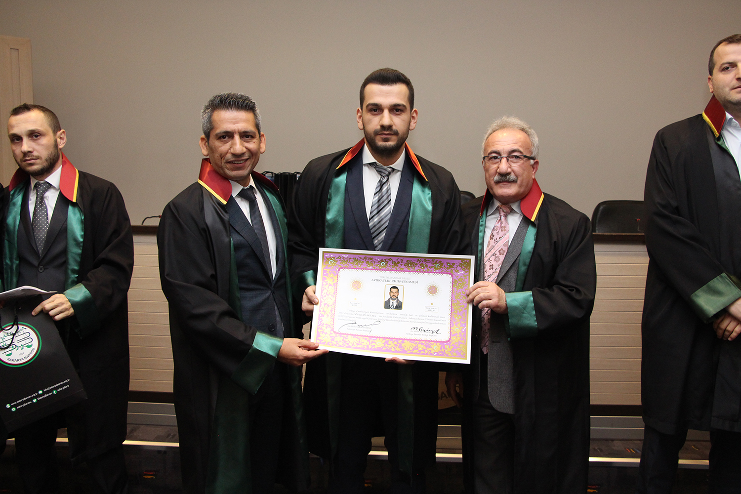 Staj dönemini başarıyla tamamlayan stajyer avukatlar; Aylin Tezgel, Oğuzhan Aktaş, Muhammed Ragıp Çalık, Cihan Karahan, Dilara Uğur, Şüheda Karaca ve Tuğba Mamay, meslek yeminlerinin ardından cübbelerini giyerek ruhsatnamelerini aldı.