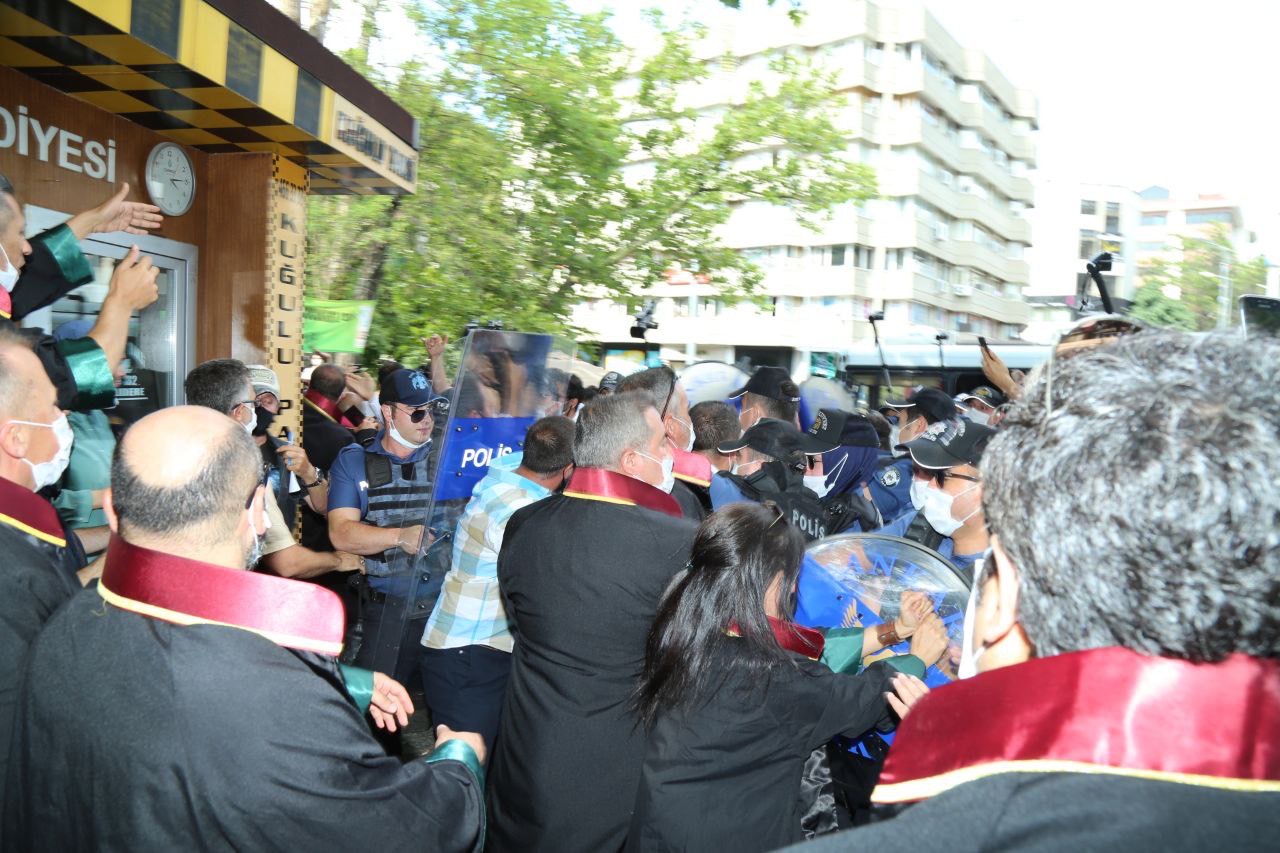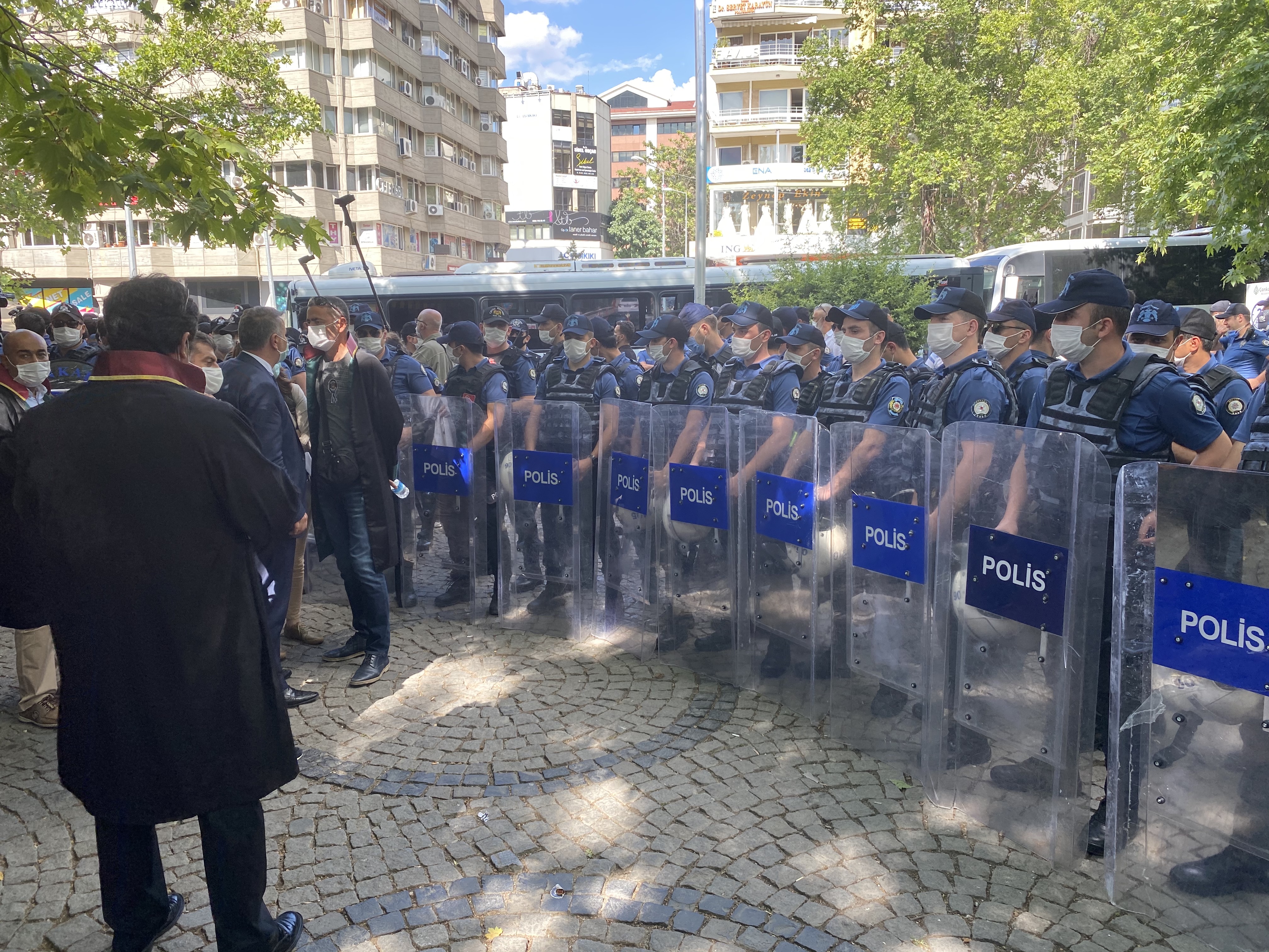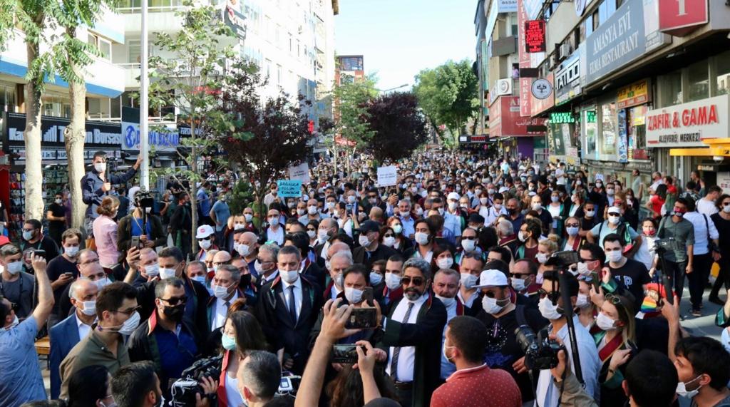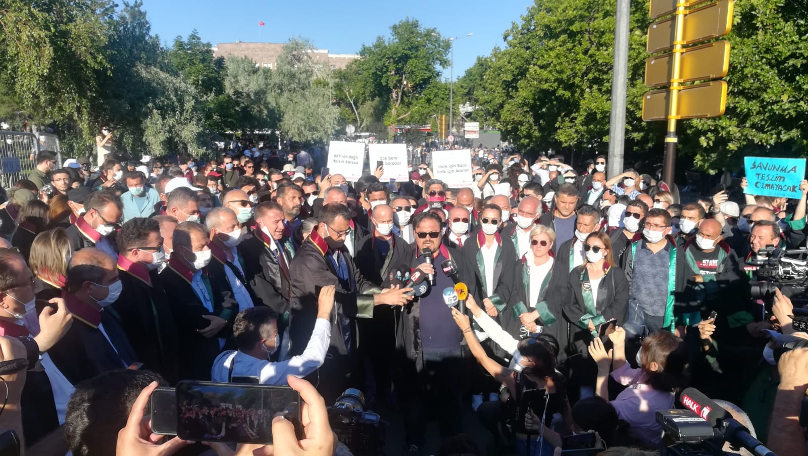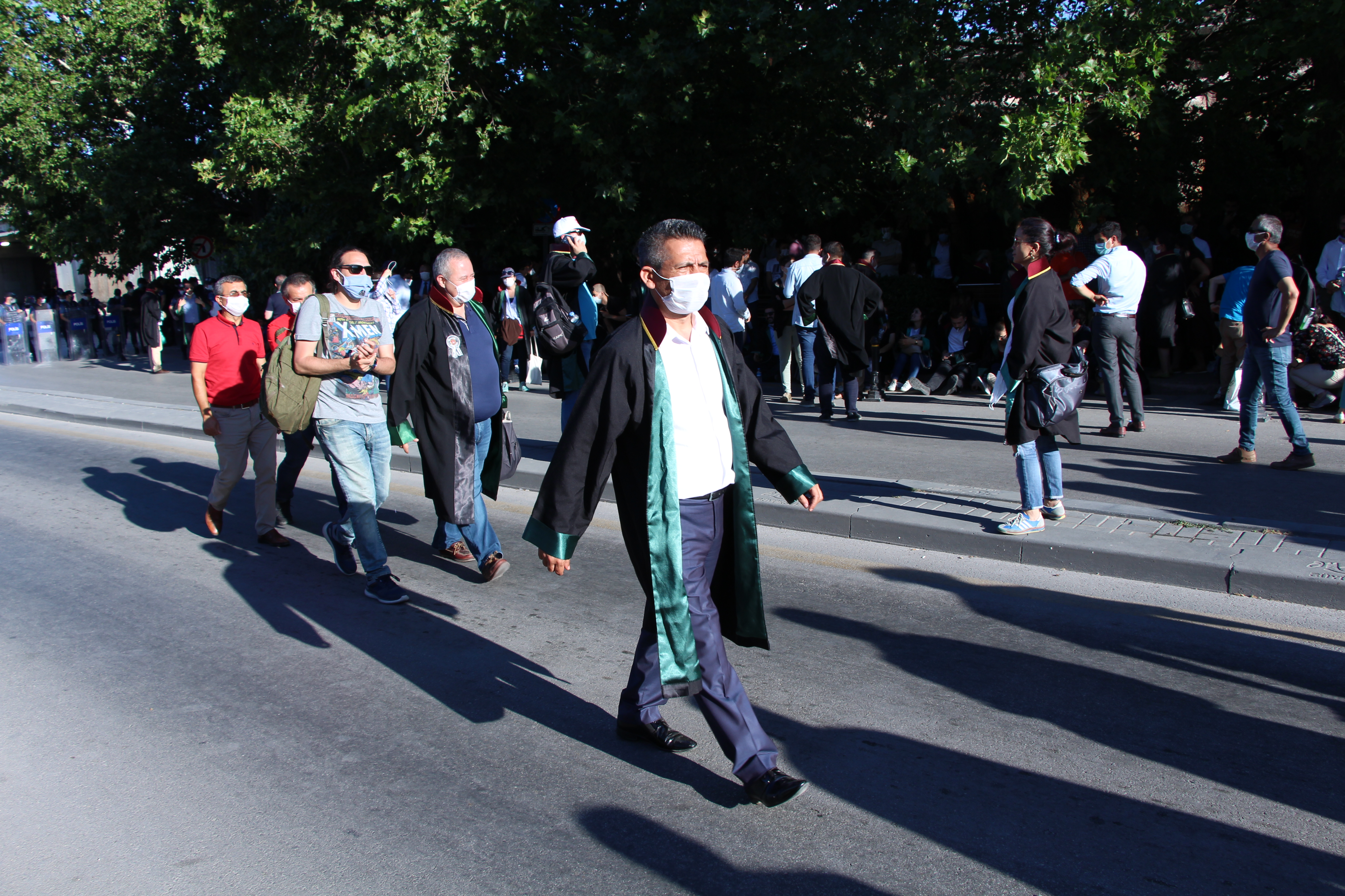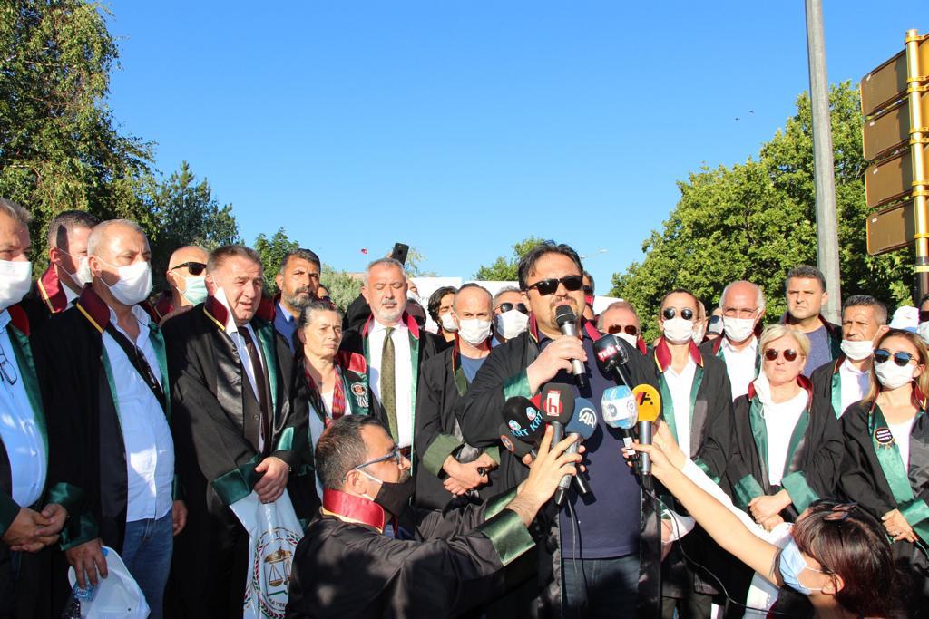 Daha sonra Meclis’ten Ankara Adliyesi’ne yürüyen Başkanlar ve avukatlar, Adliye önünde basın açıklaması yaptı. Açıklamayı, Başkanlar adına Bursa Barosu Başkanı Av. Gürkan Altun yaptı.