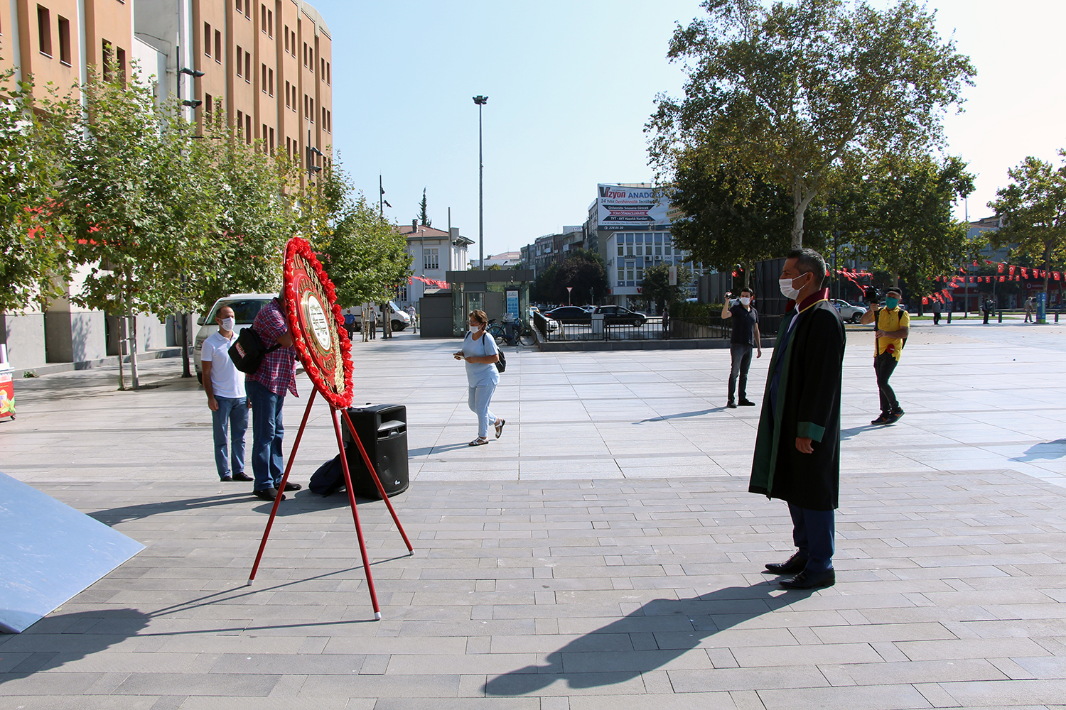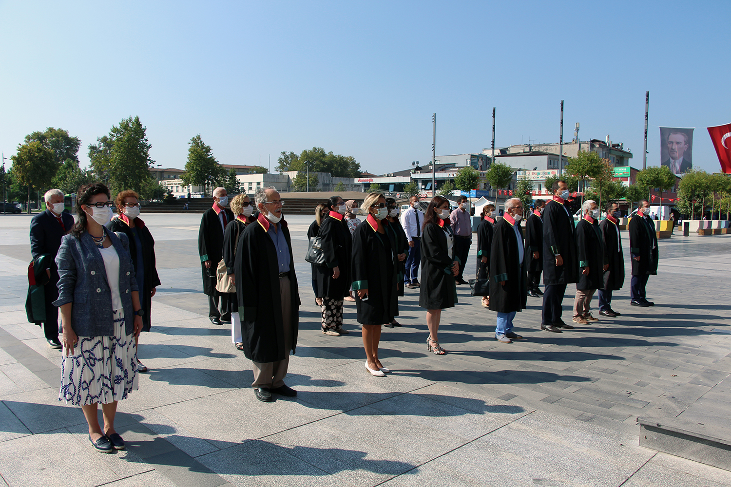 İstiklal Marşı’nın okunmasının ardından bir konuşma yapan Baro Başkanı Abdurrahim Burak, “2020- 2021 yeni adli yılında Sakarya Barosu olarak yine en önemli görevimiz, ülkemize, demokrasimize, hukukun üstünlüğüne, yargı bağımsızlığına, hukuk devletine, insan haklarına ve savunma hakkına sonuna kadar sahip çıkmaktır” diye konuştu.