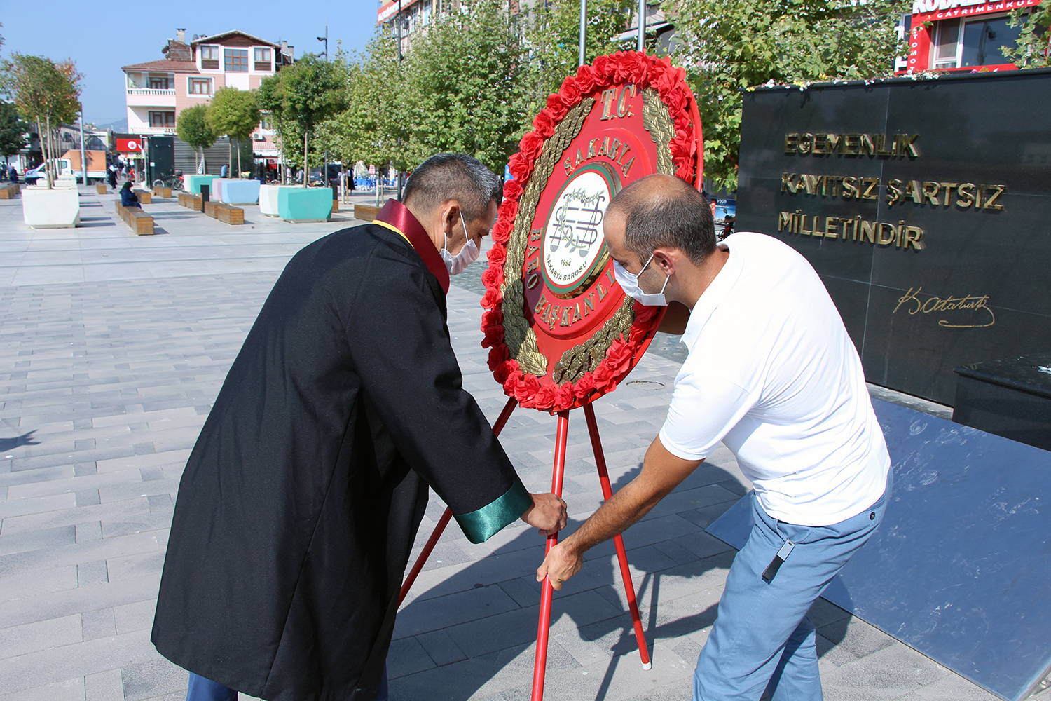 Törende ilk olarak Atatürk Anıtı'na çelenk konulurken, daha sonra saygı duruşunda bulunuldu ve İstiklal Marşı okundu.