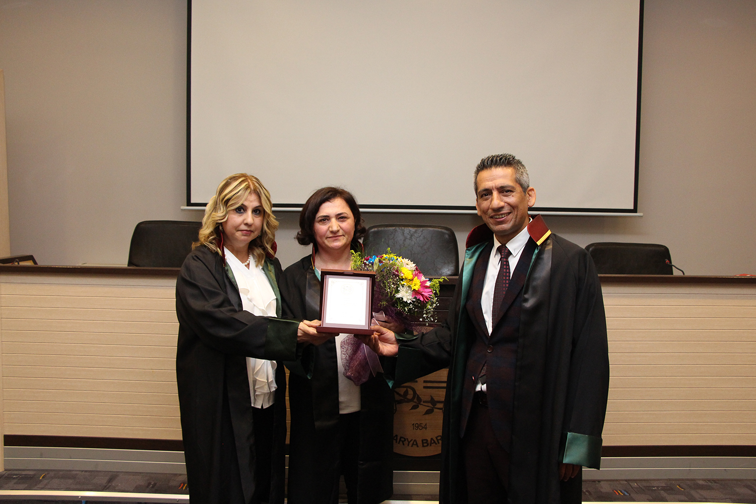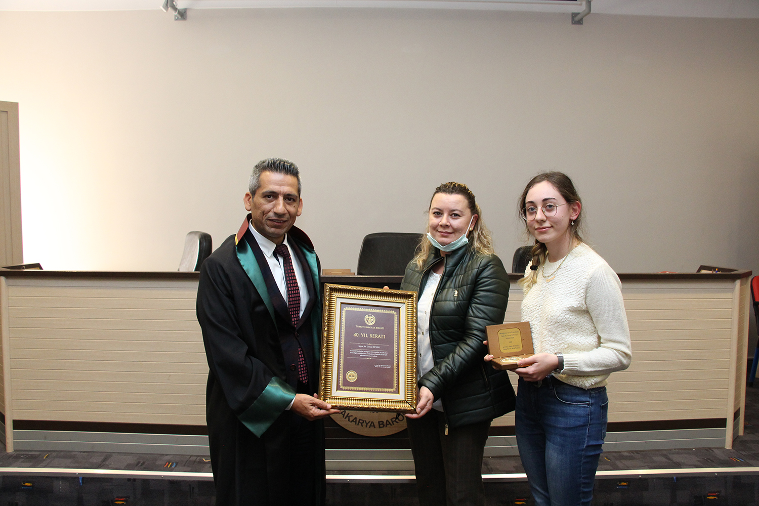 Törende meslektaşlarını tebrik eden Başkan Abdurrahim Burak, “Sakarya Barosu ailesi, her zaman dayanışma içerisinde olan ve samimiyete inanan bir ailedir. Bu noktada oldukça şanslı olduğumuzu biliyoruz. Bugün meslektaşlarıma ve üstatlarıma plaket takdim etmek benim için çok büyük bir onur. Meslek ustalarımız yıllarca vatandaşlarımızın haklarını savunarak, adaleti tesis ettiği için saygılarımızı sunuyoruz. Sakarya Barosu ailemizdeki büyüklerimiz, duruşlarıyla bizlere her zaman örnek olmuştur. Desteklerini de hiçbir zaman esirgemeyen üstatlarımıza şükranlarımızı sunuyoruz. İnşallah daha uzun yıllar meslek hayatlarını sürdürürler. Tüm meslektaşlarıma, meslek hayatlarında sağlık, mutluluk ve başarılar diliyorum” ifadelerini kullandı.