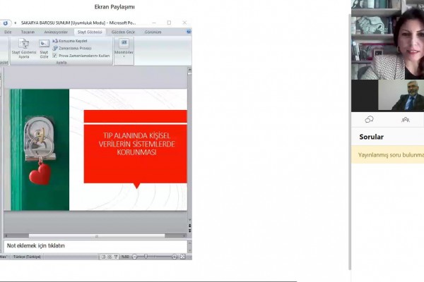 Sakarya Barosu, pandemi şartları nedeniyle eğitimleri çevrim içi düzenliyor. Son olarak baro, Tıp alanında Kişisel Verilerin Korunması, YZ Tabanlı Sağlık Sistemlerinde Kişisel Verilerin Korunması ve Avrupa Konseyi’nin Tavsiye Kararları konulu çevrim içi eğitim düzenledi. Avukatların ve stajyer avukatların katıldığı eğitimi, LL.M. Av. Sabire Sanem Yılmaz verdi.
