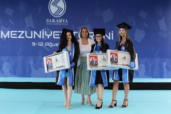 Törende Başkan Yıldız, Hukuk Fakültesi’ni birincilikle bitiren Esranur Maral’ı, ikincilikle bitiren Şeyma Güngör’ü ve üçüncülükle bitiren Meltem Çay’ı tebrik ederek Sakarya Barosu’na ait adalet saati hediye etti.