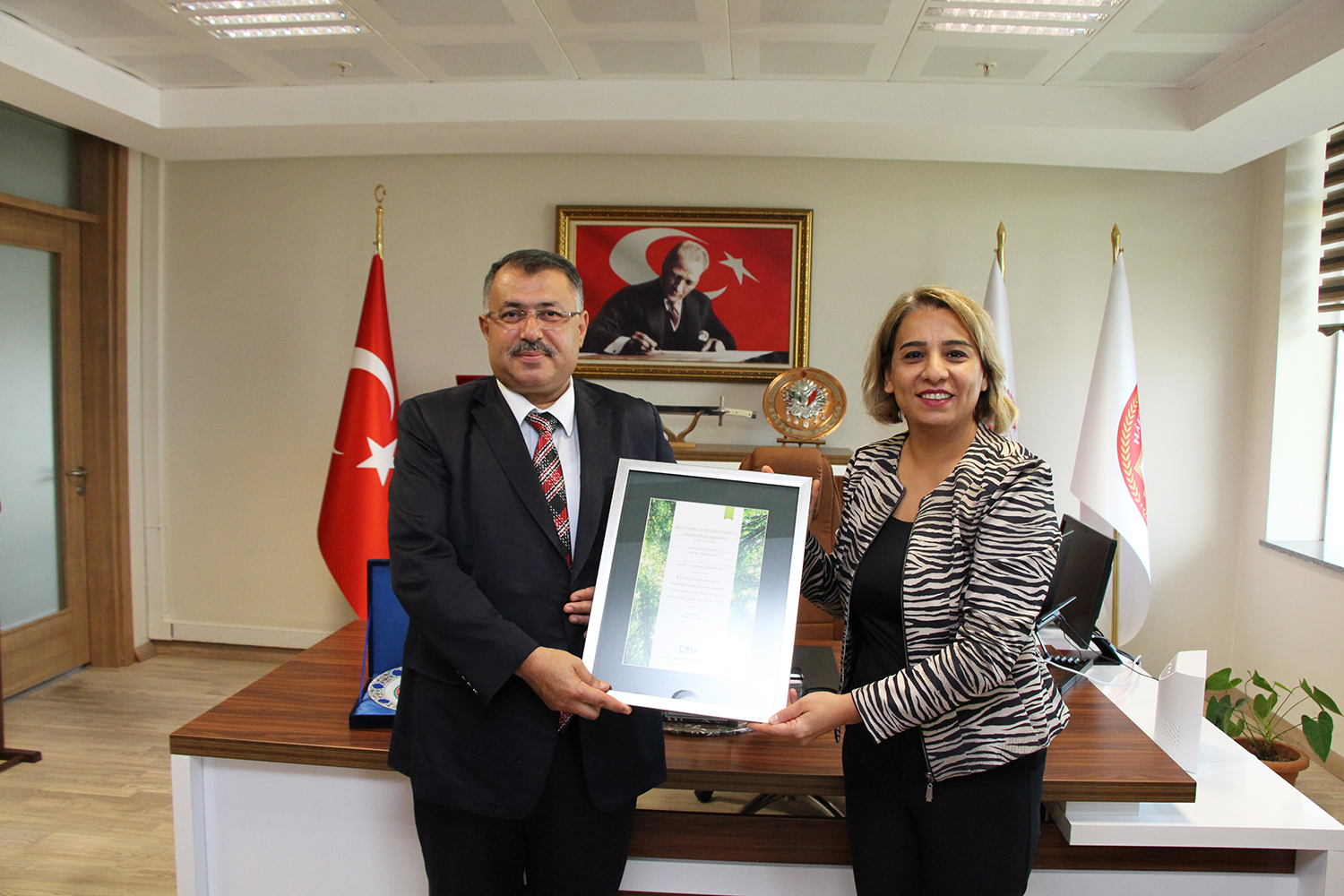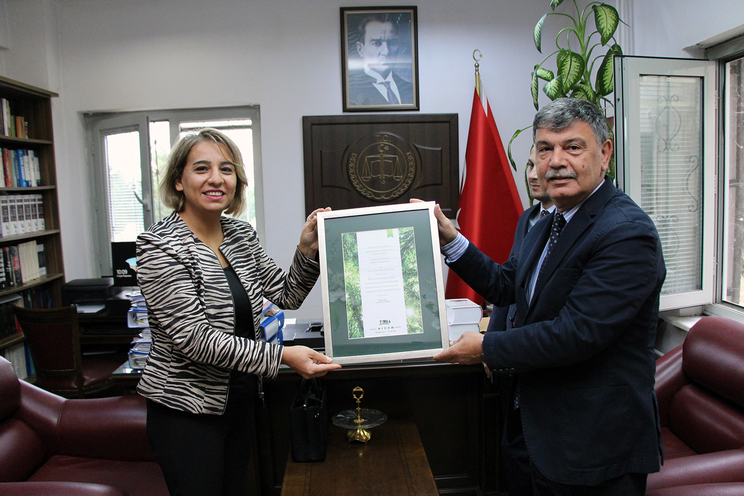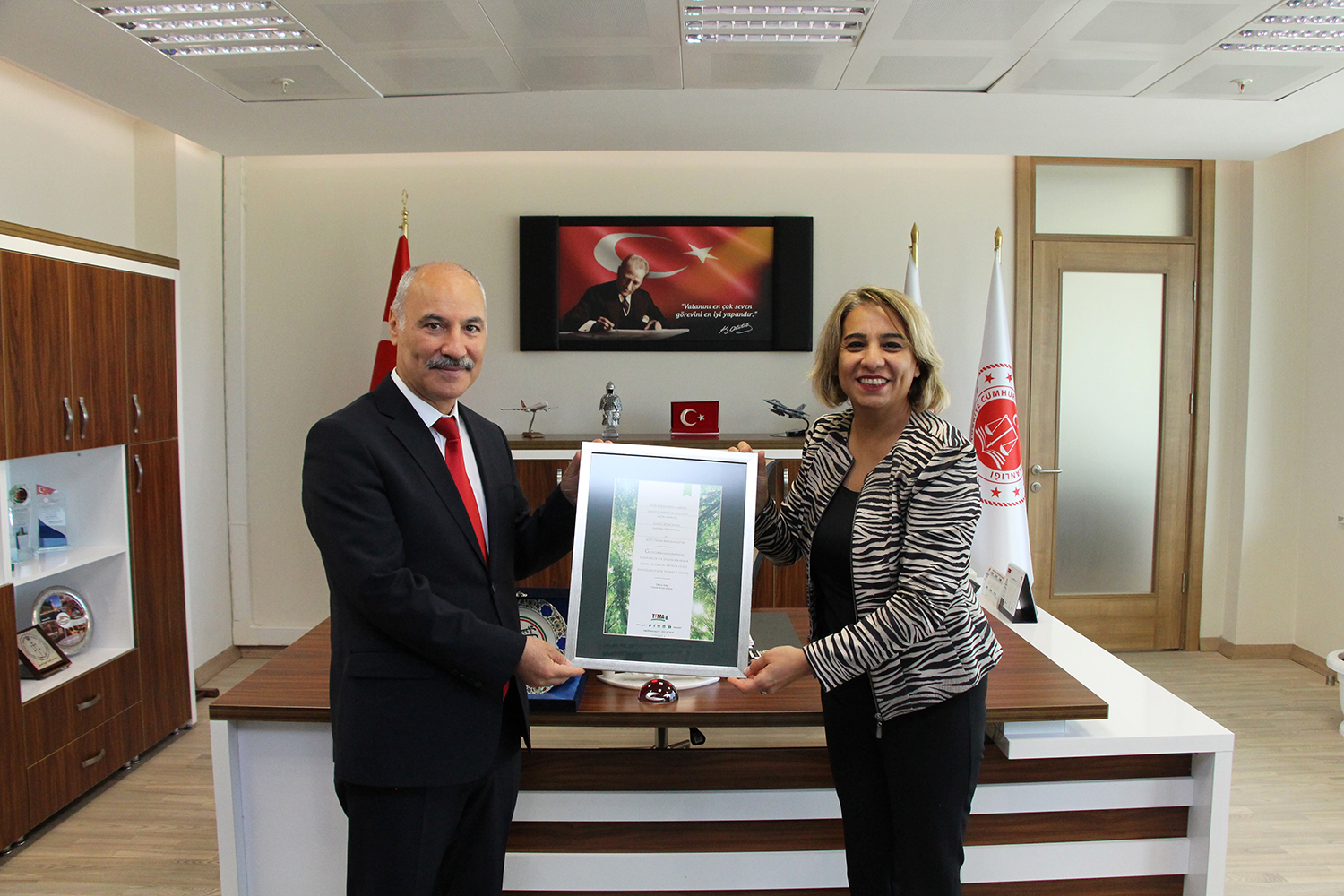 Baro Başkanı Yıldız günün anısına tüm ziyaretlerde, Sakarya Barosu logolu çini tabak ve ziyaret ettiği kişinin adına fidan bağışı yaptığı sertifikaları takdim etti.
