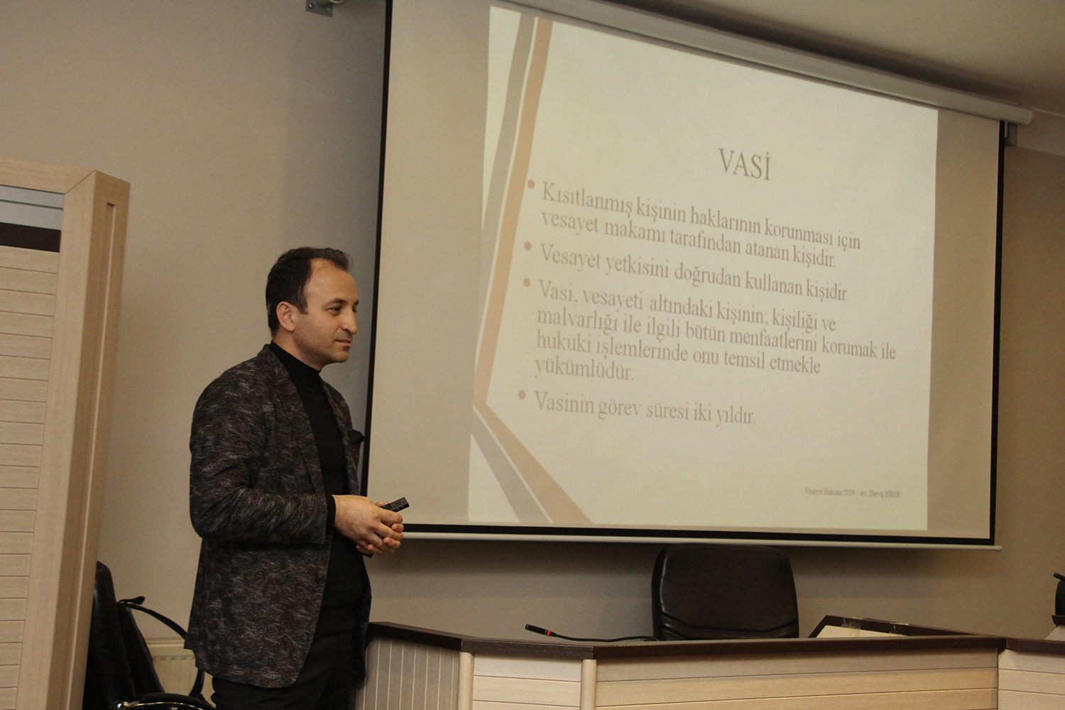 Sakarya Barosu tarafından ‘Vesayet Hukuku’ konulu eğitim düzenlendi. Baro Konferans Salonu’nda gerçekleştirilen eğitimi, Ankara Barosu üyesi Av. Derviş Birer verdi.