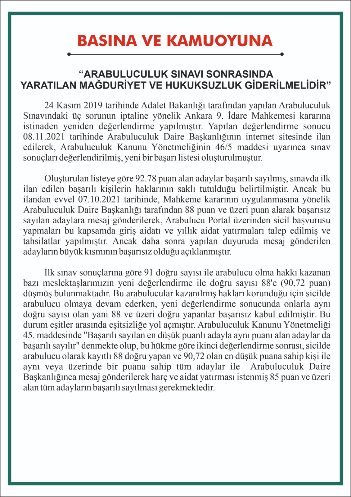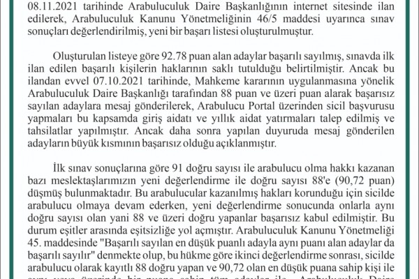 Barolardan ortak açıklama: Arabuluculuk sınavı sonrasında yaratılan mağduriyet ve hukuksuzluk giderilmelidir” 15.11.2021 753 Görüntüleme 15.11.2021 753 Görüntüleme